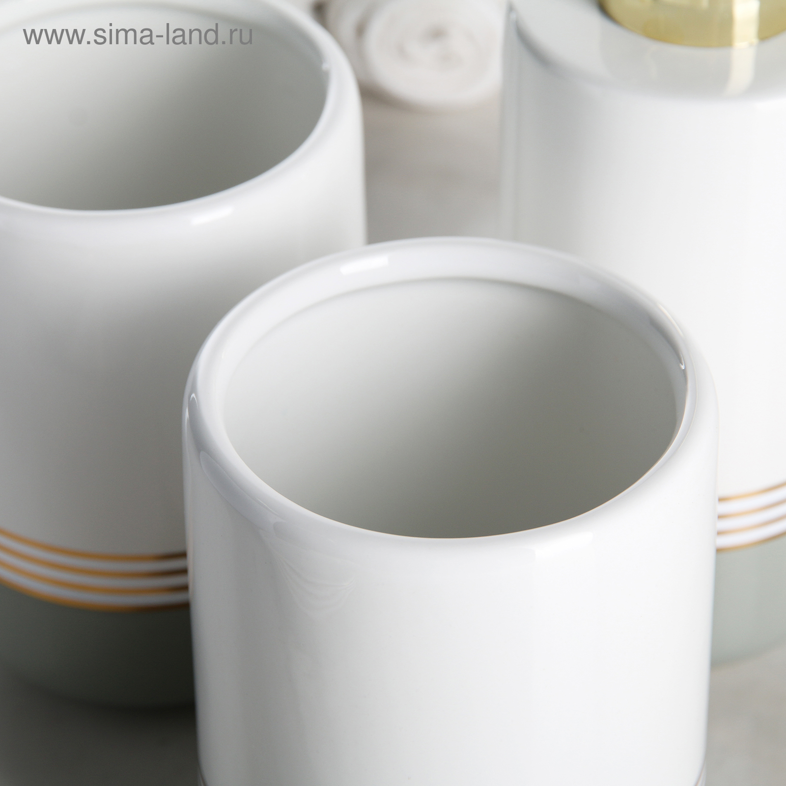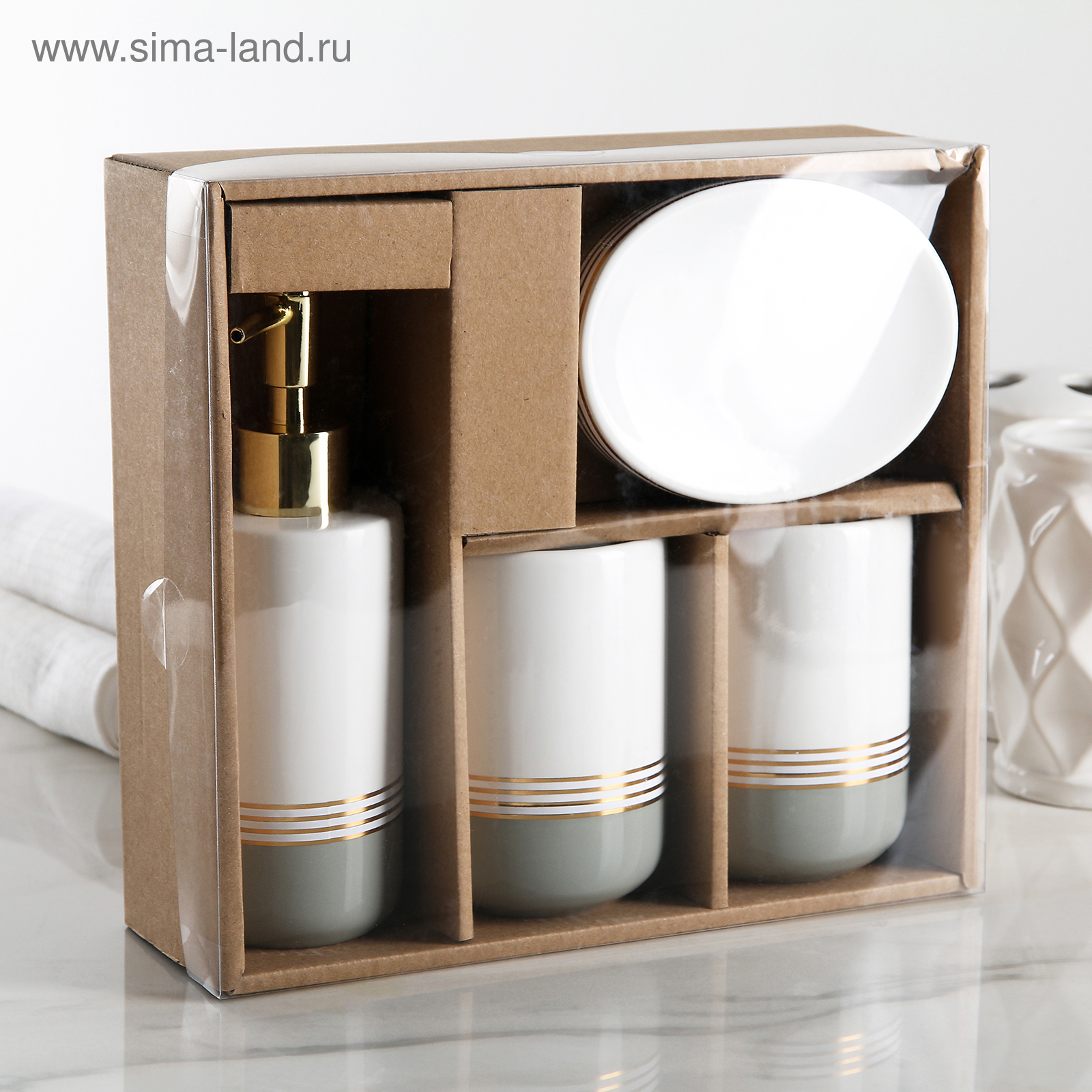 Набор аксессуаров для ванной комнаты «лили», 4 предмета (дозатор 300 мл, мыльница, 2 стакана), цвет бело-серый