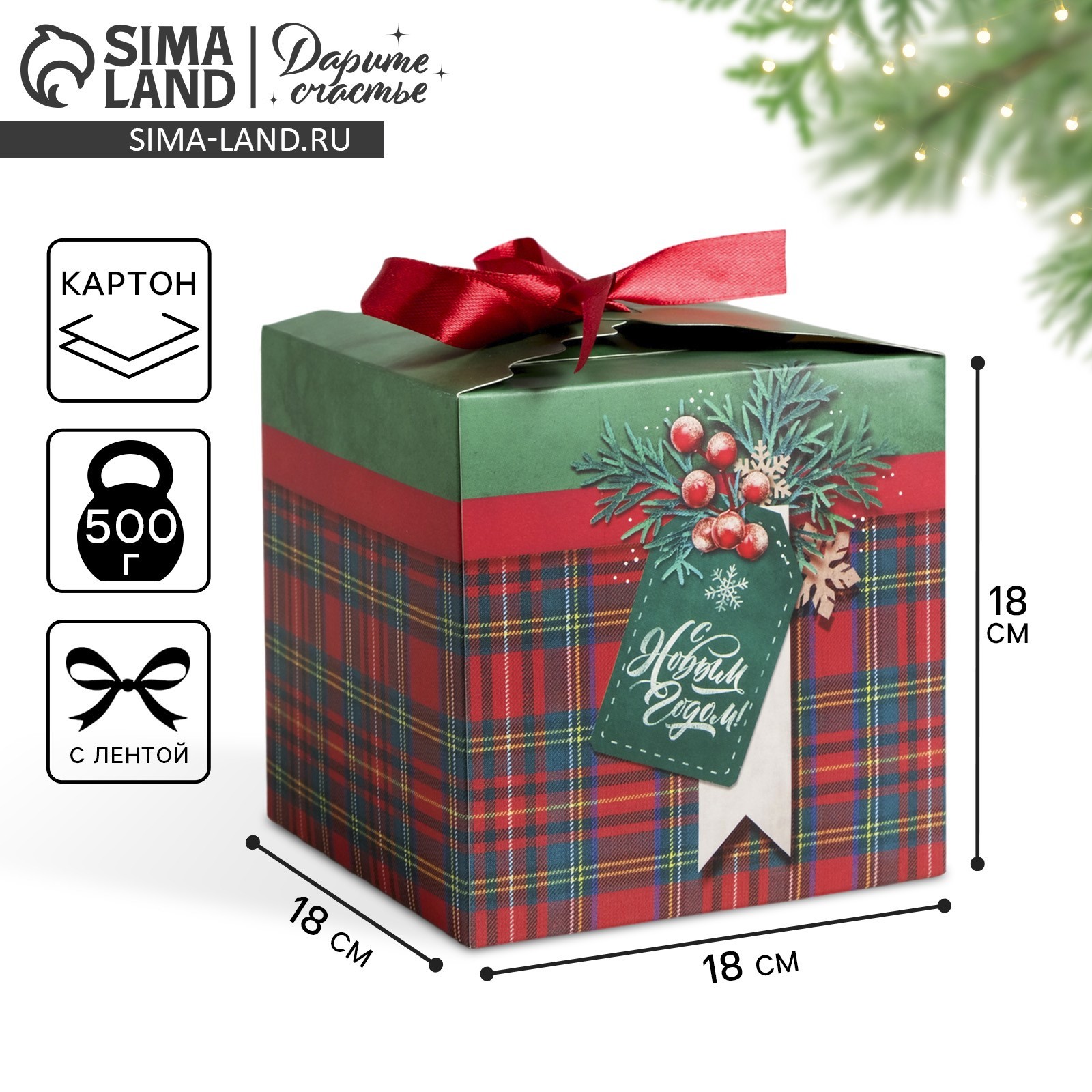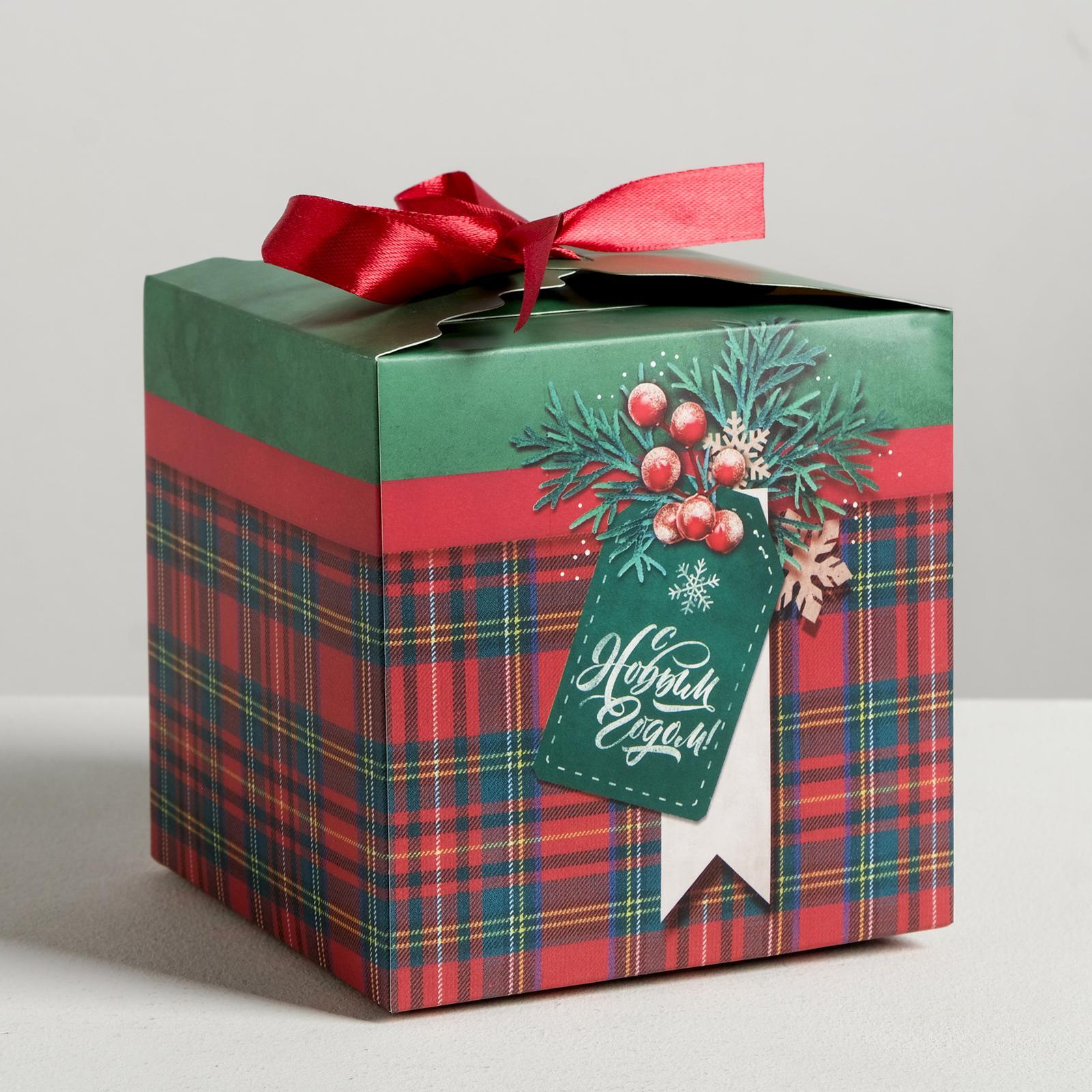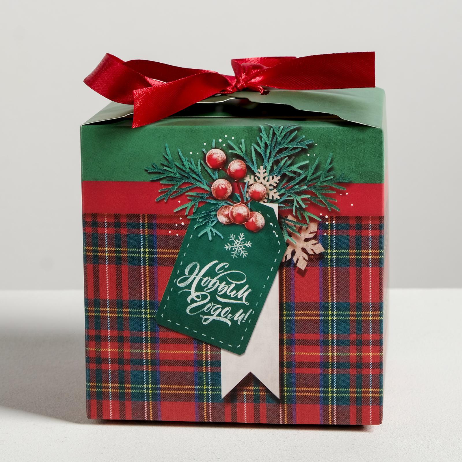 Коробка подарочная новогодняя складная «с новым годом!», 18 х 18 х 18 см