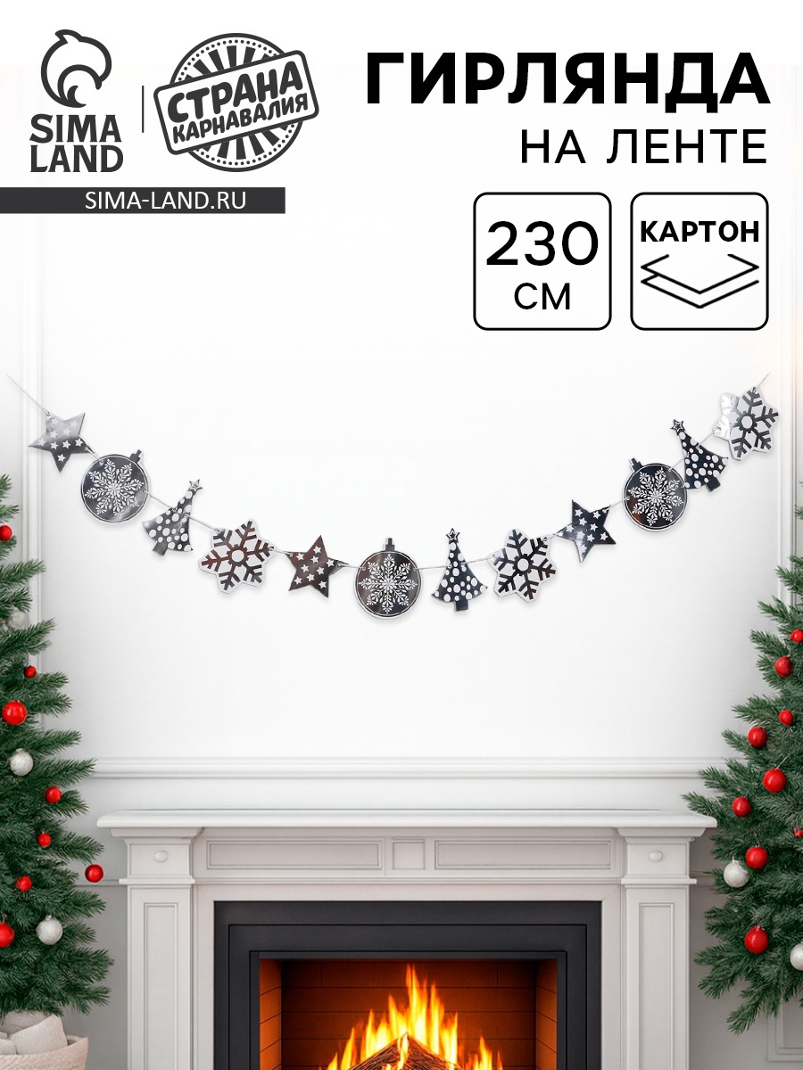 Гирлянда бумажная «новогодняя», 230 см, серебряная