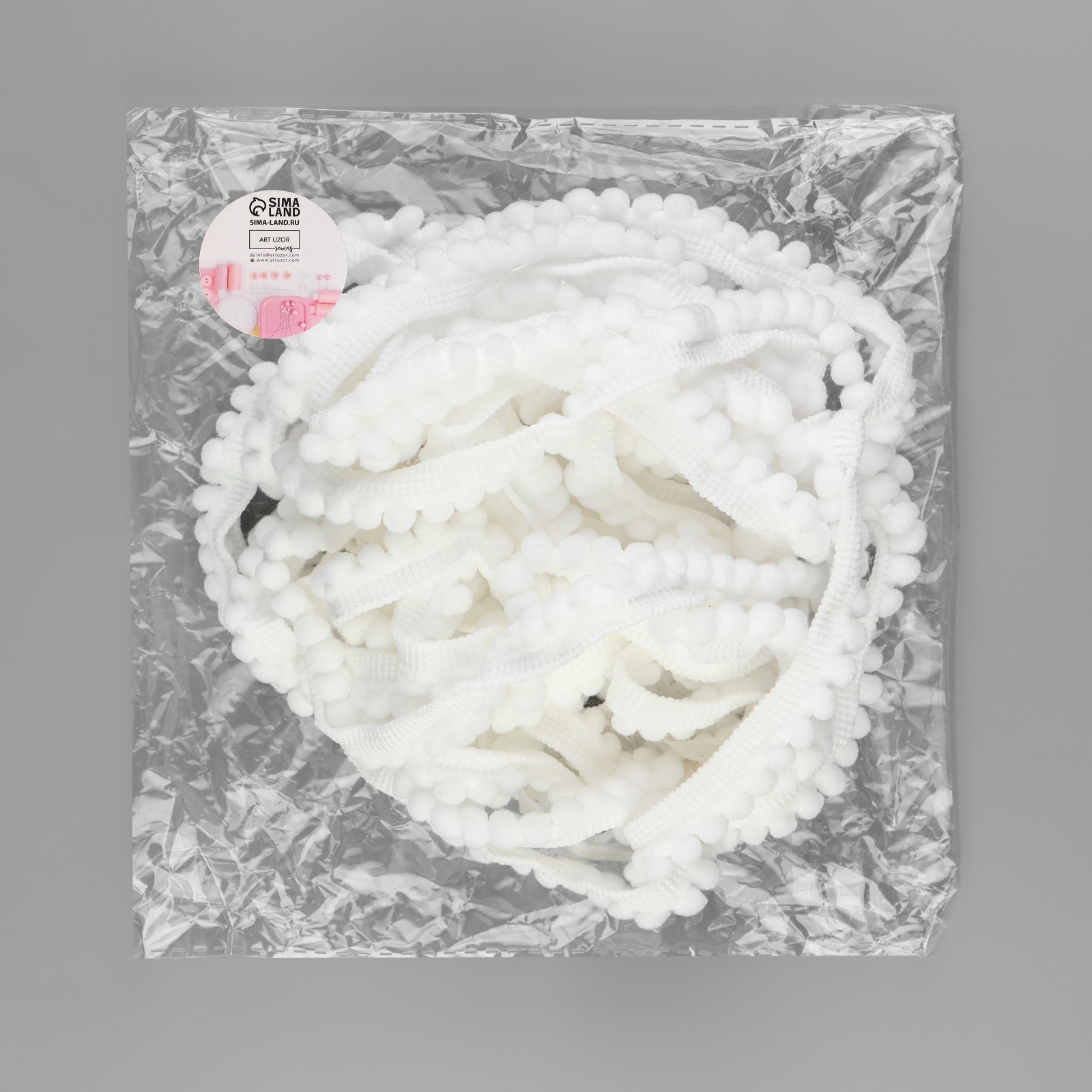 Тесьма декоративная с помпонами, 12±2 мм, 9.1±0.5 м, белая
