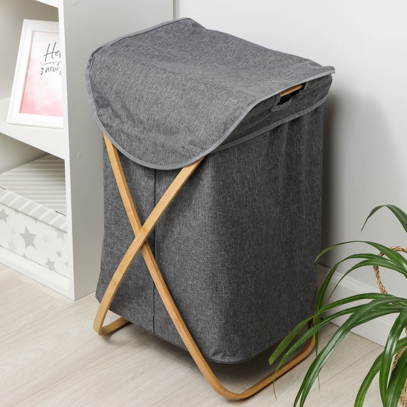Корзина универсальная с крышкой доляна «лён», 37x43x66 см, цвет серый