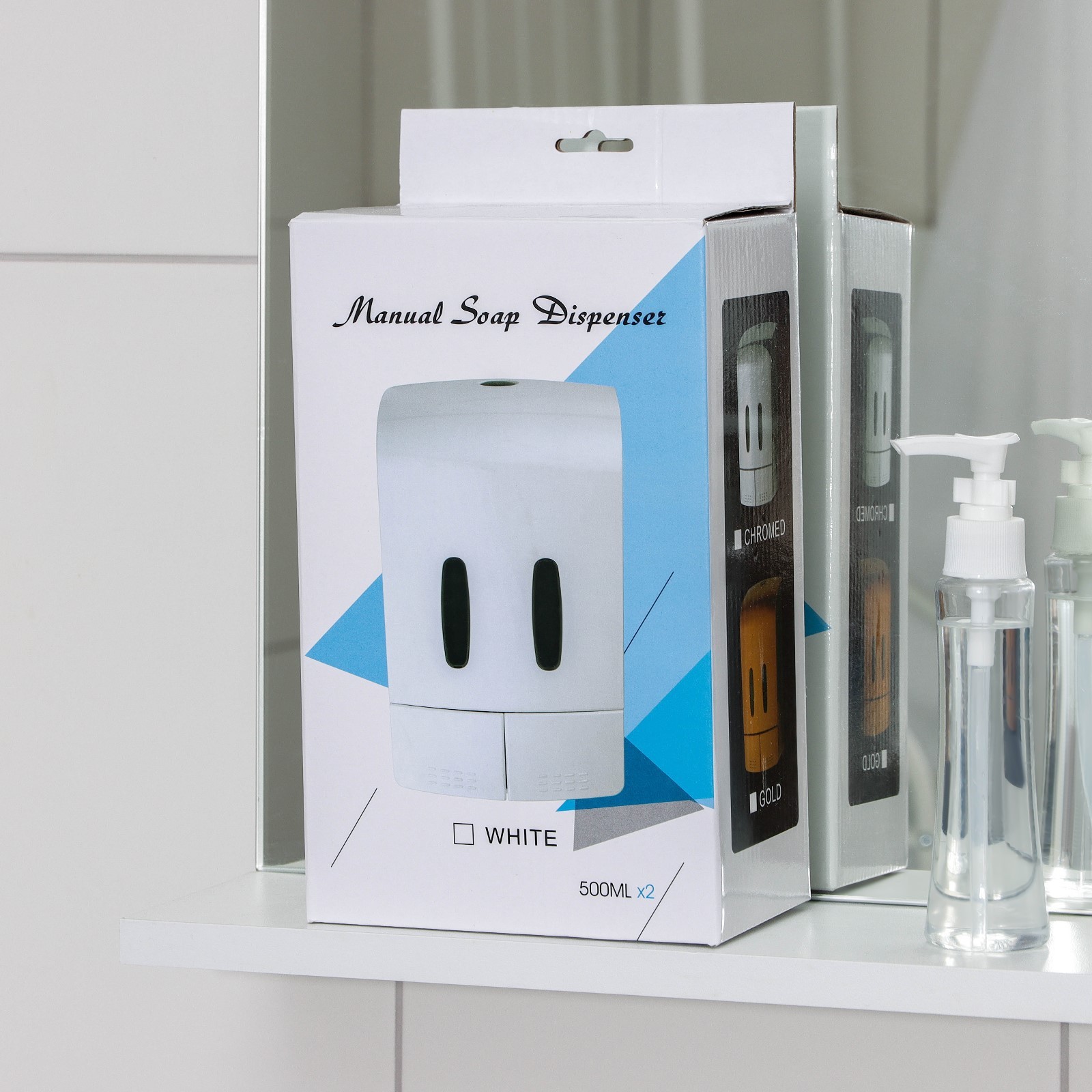 Диспенсер для антисептика или жидкого мыла механический, двойной, 1000 мл, пластик