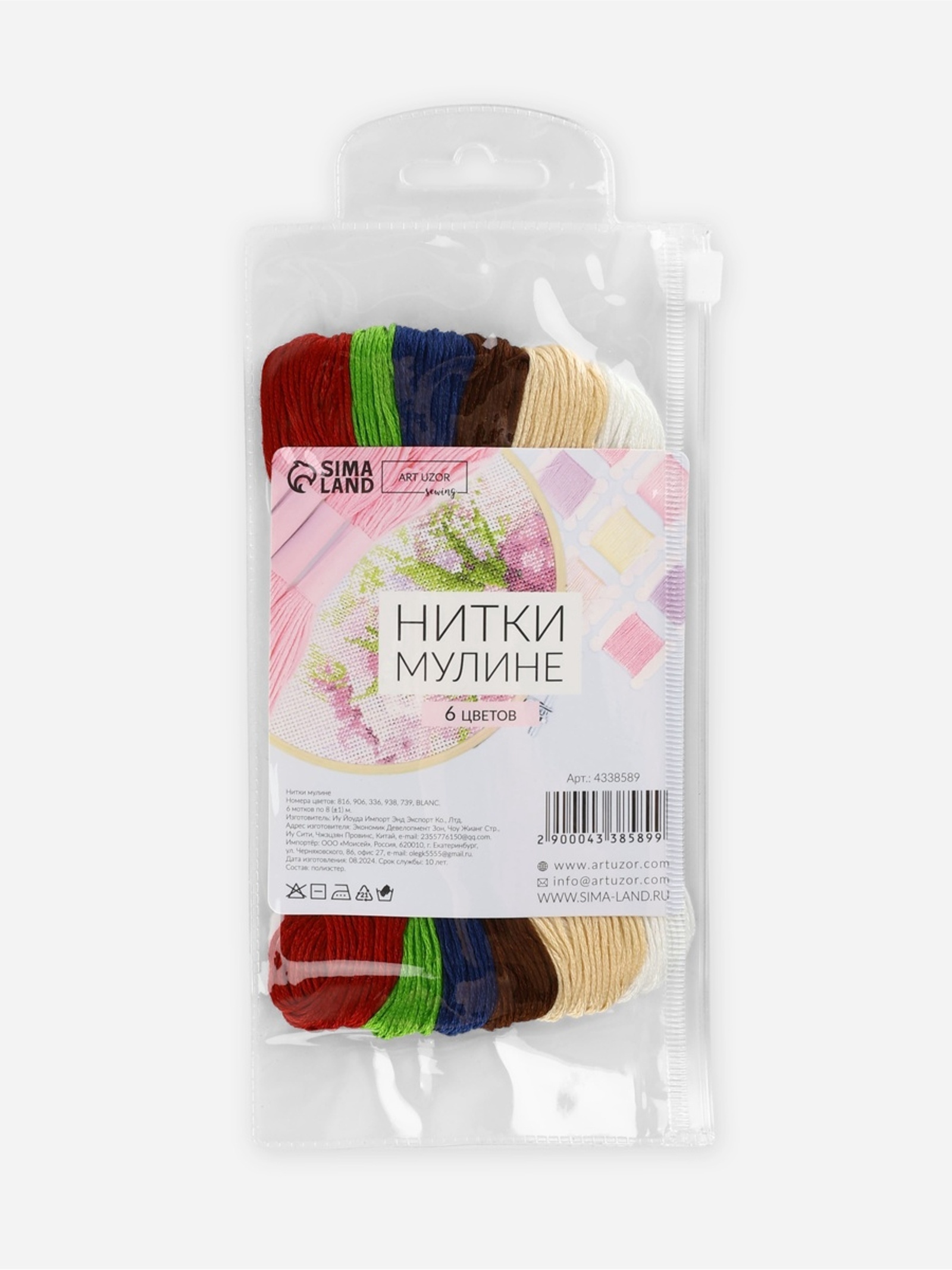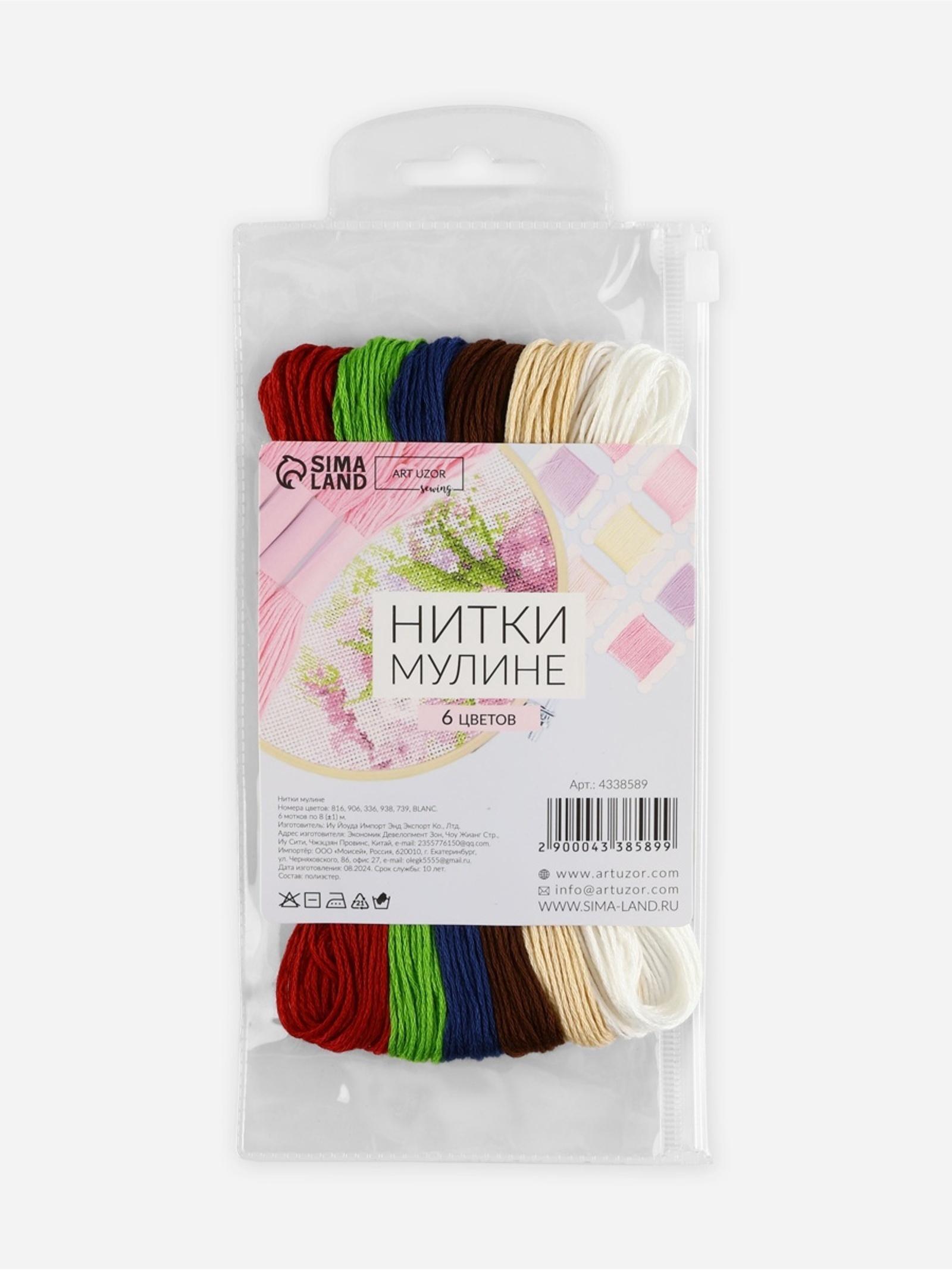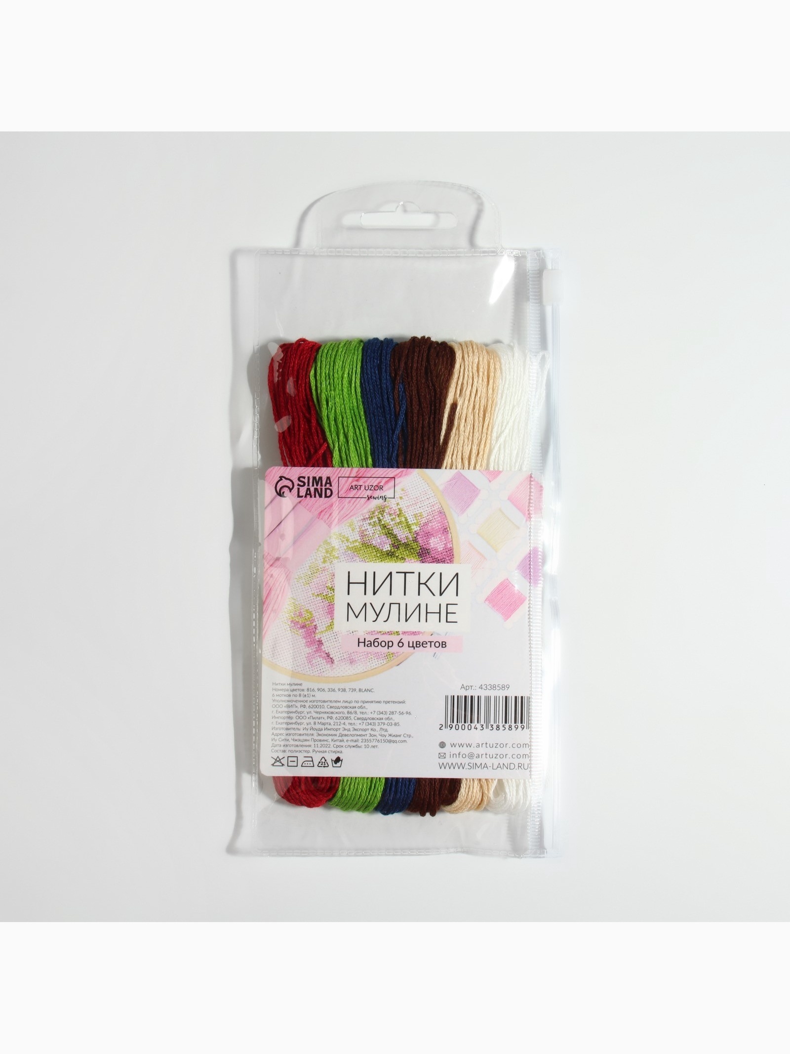Нитки мулине №12, 8±1 м, набор 6 шт., разноцветные