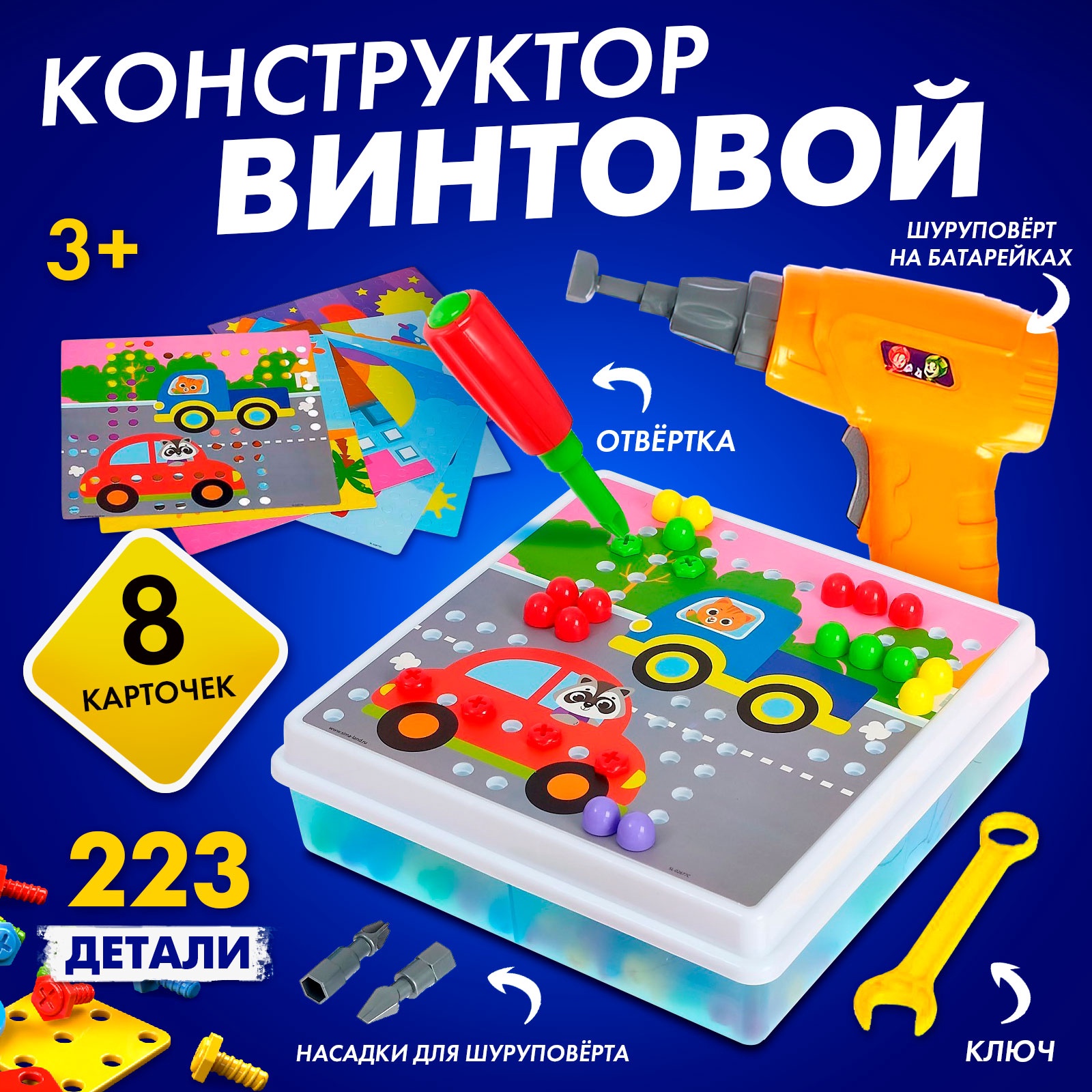 Конструктор винтовой «конструктики» с шуруповёртом, 223 детали