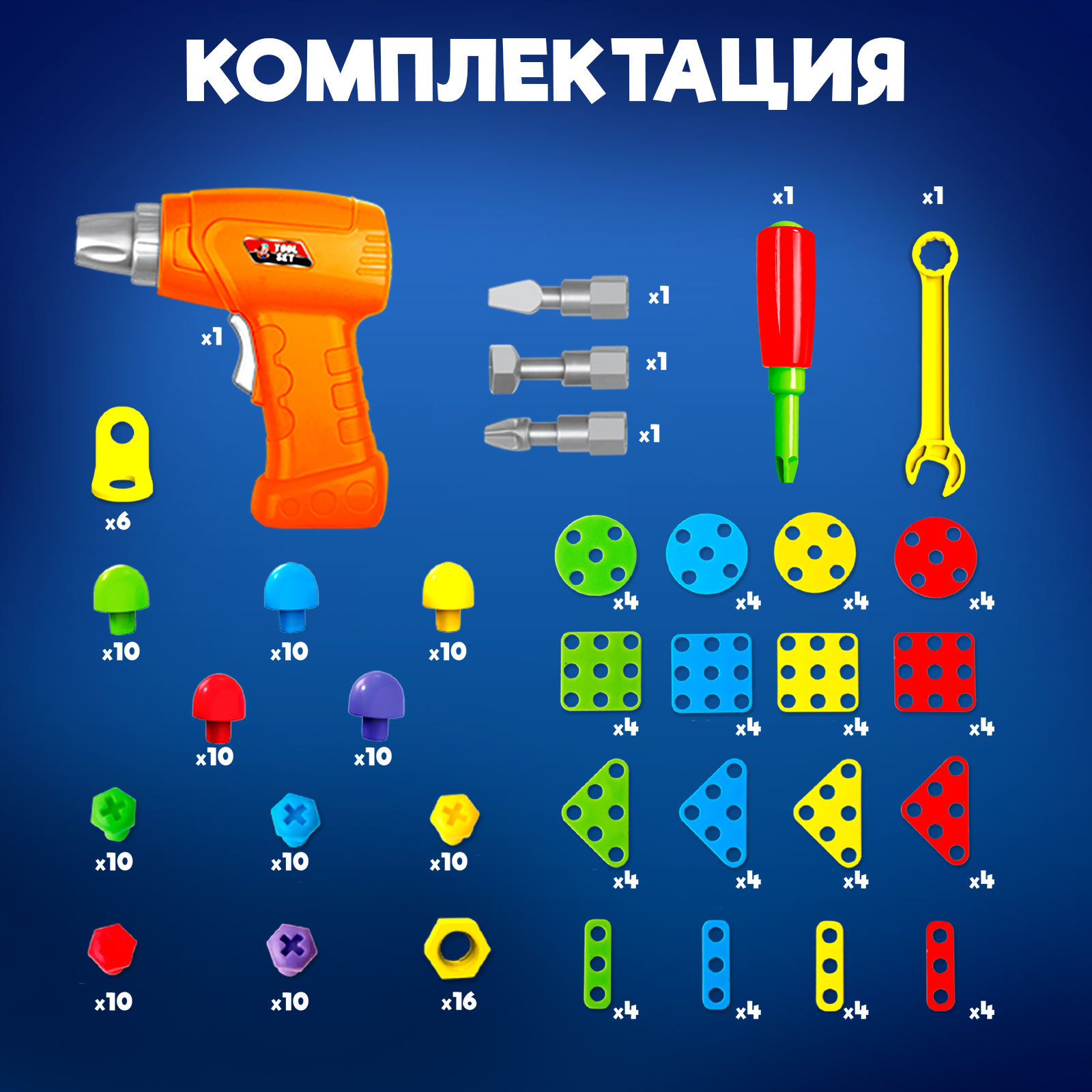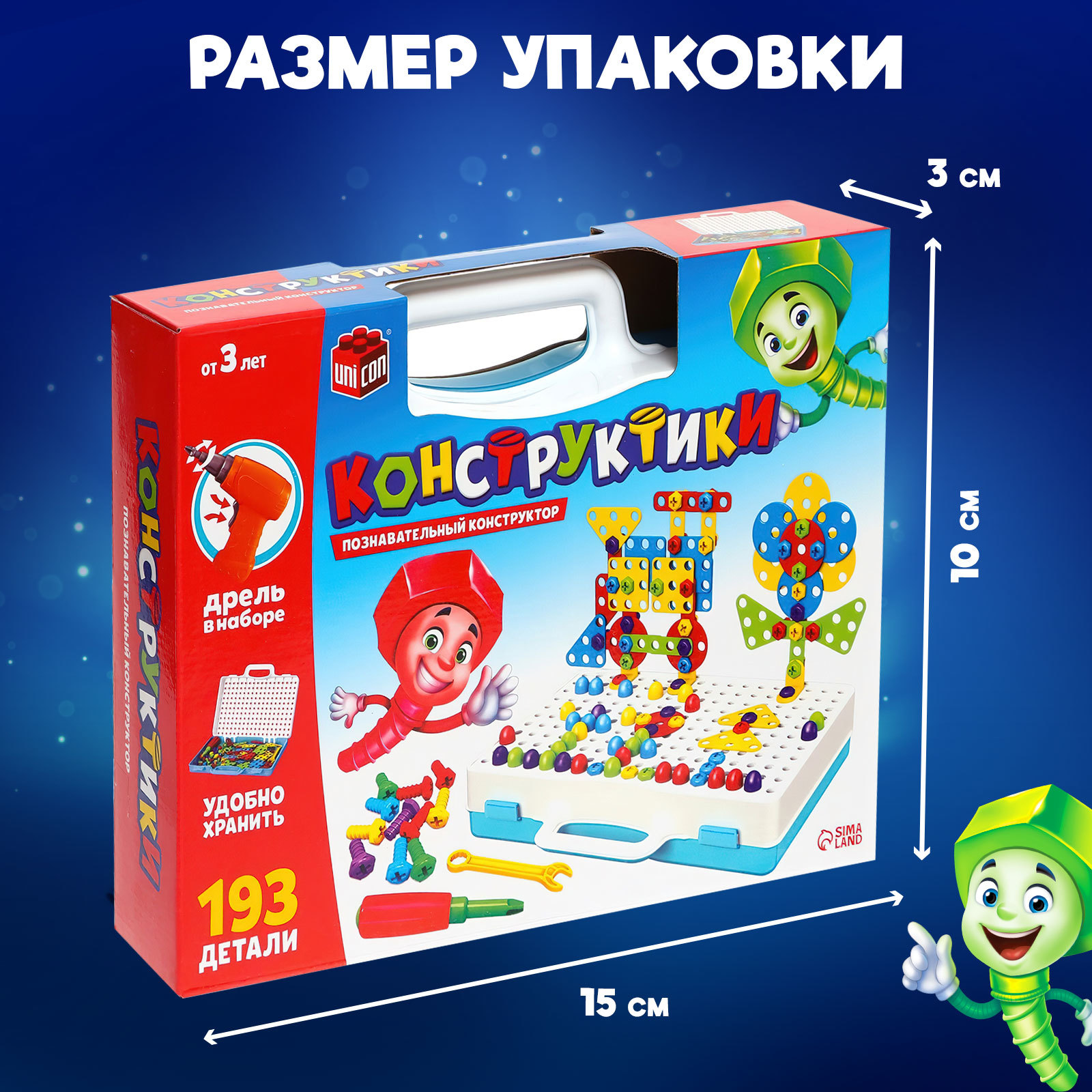Конструктор винтовой «конструктики» с шуруповёртом, 193 детали