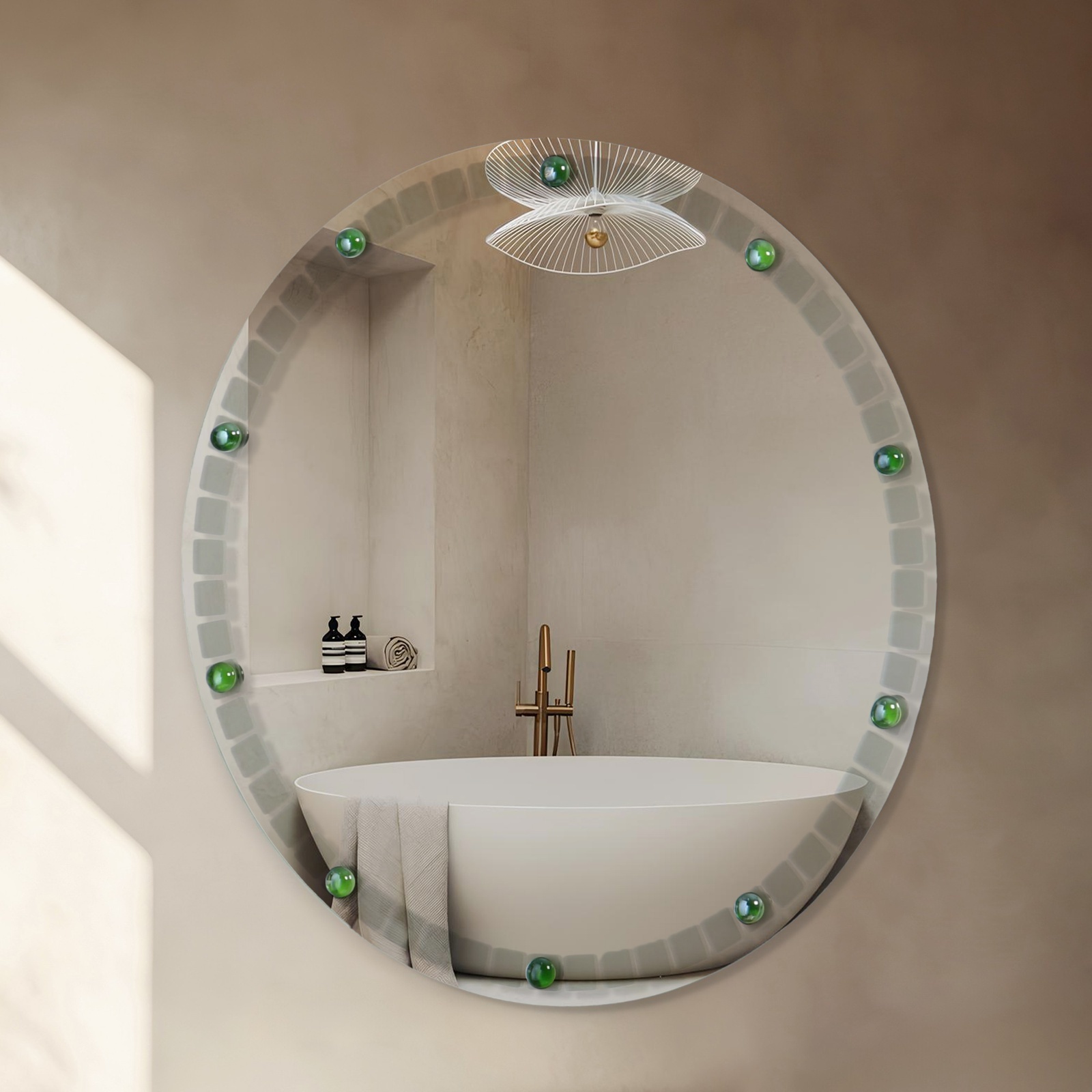 Зеркало «одуванчики», с пескоструйной графикой и фьюзингом, настенное, D=50 см микс