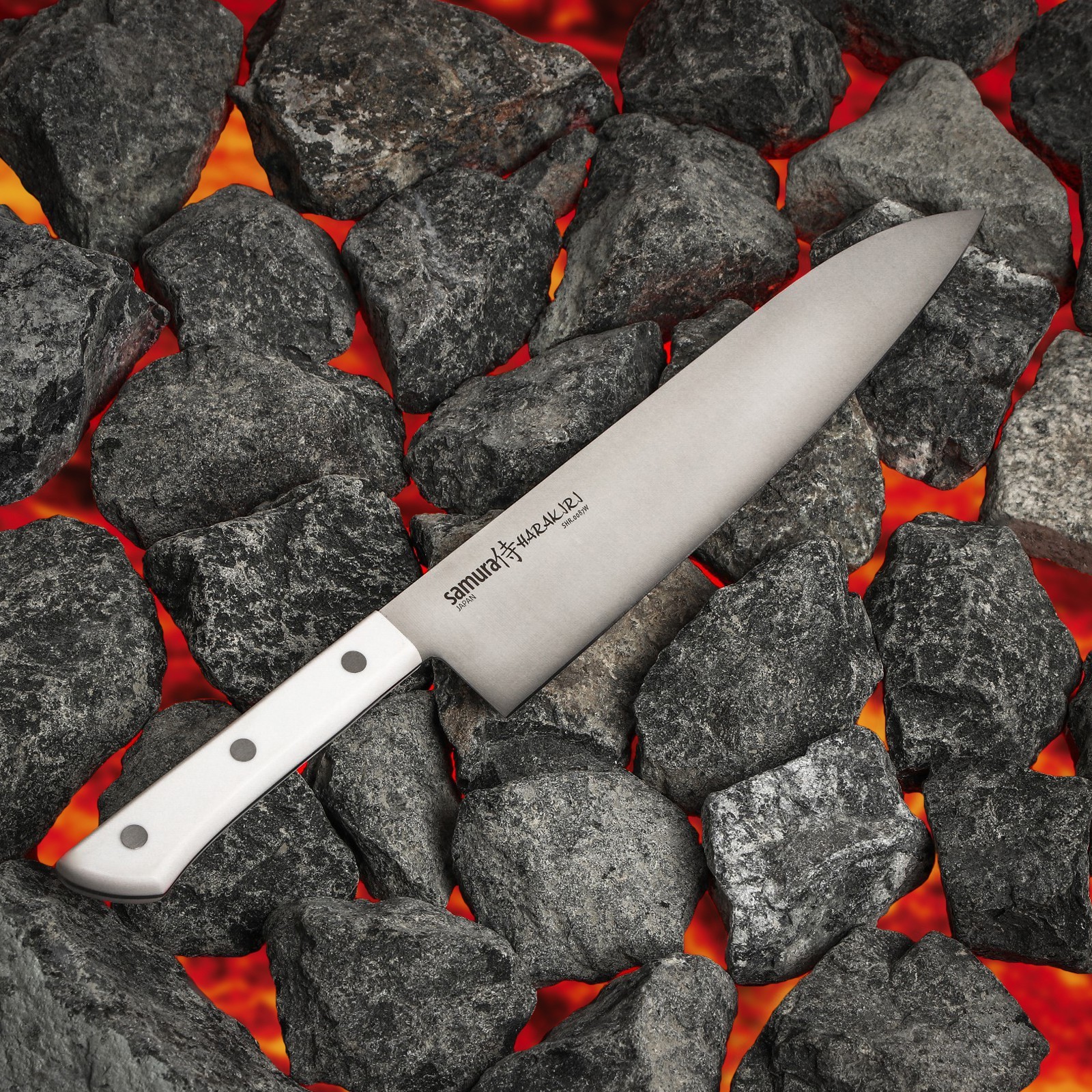 Нож кухонный Samura Harakiri, шеф, лезвие 24 см, белая рукоять