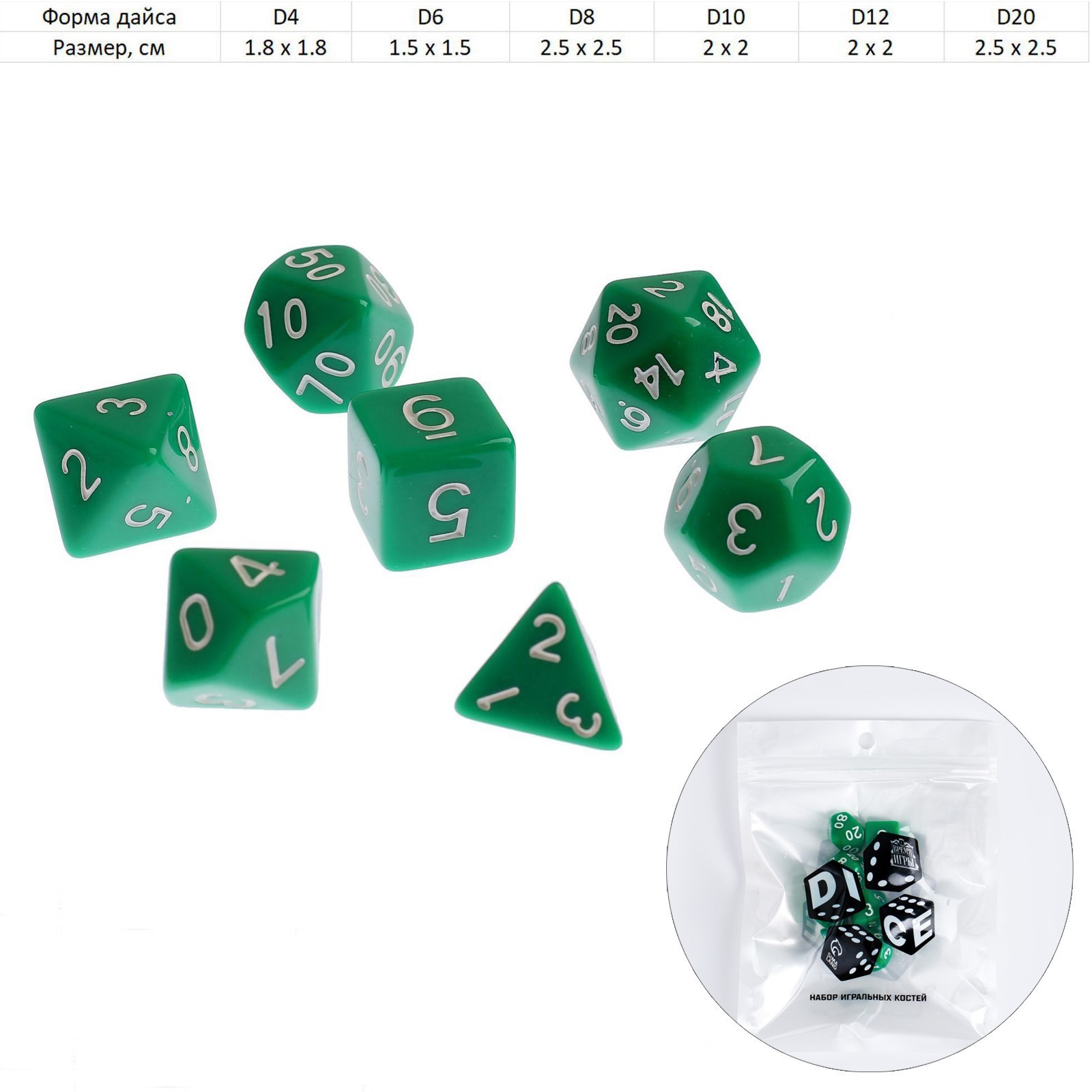 Кубики - дайсы для днд, набор 7 шт.