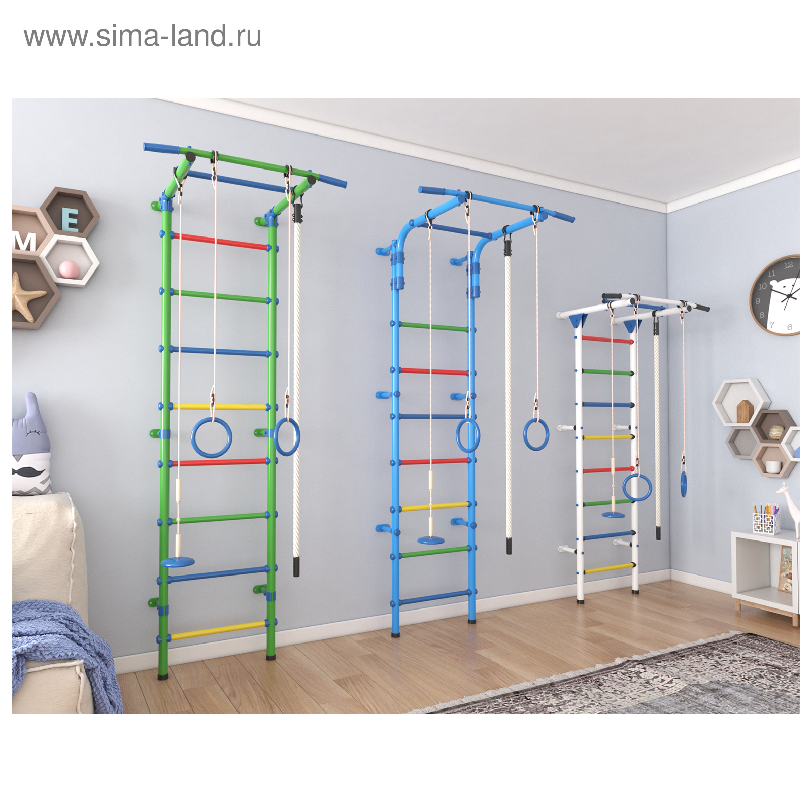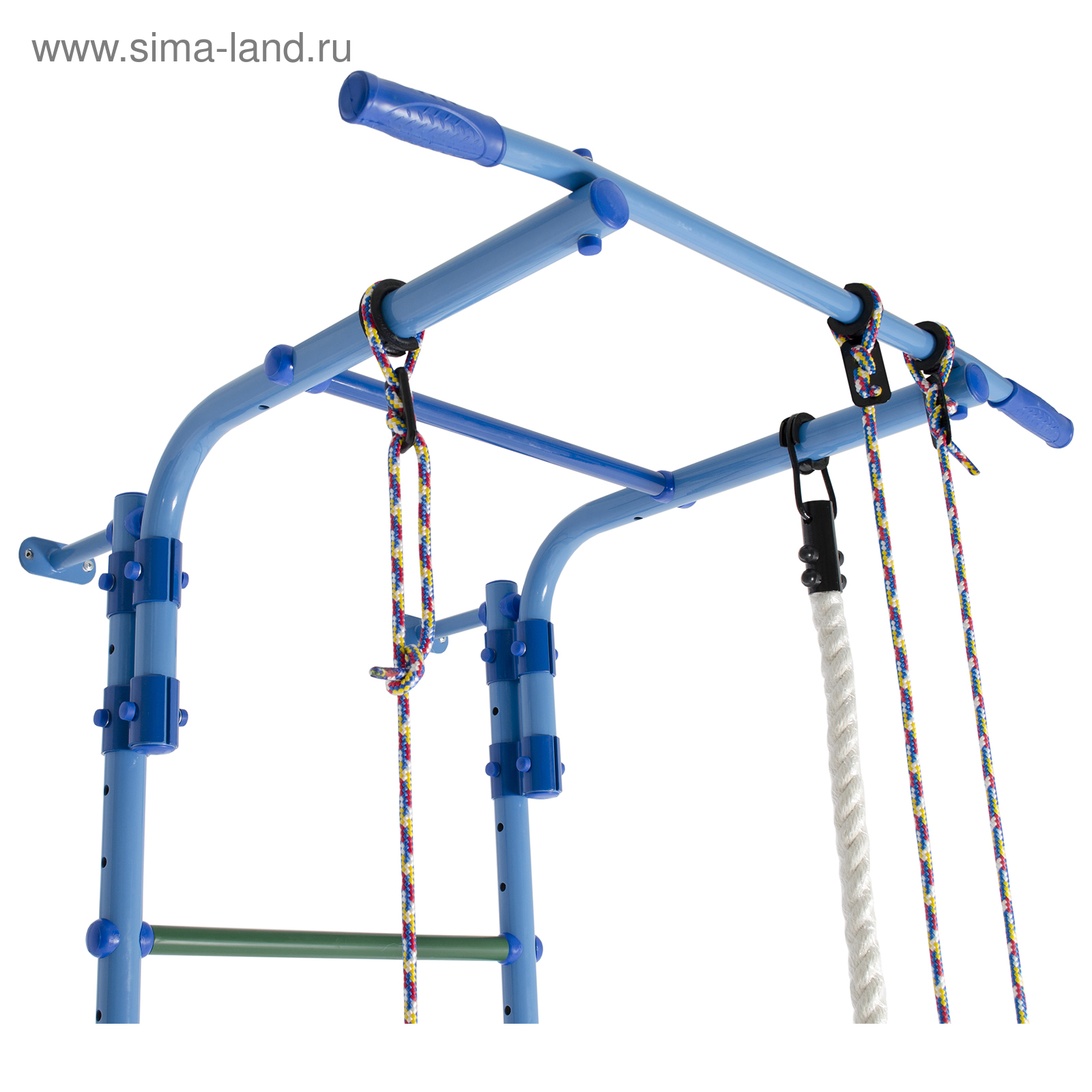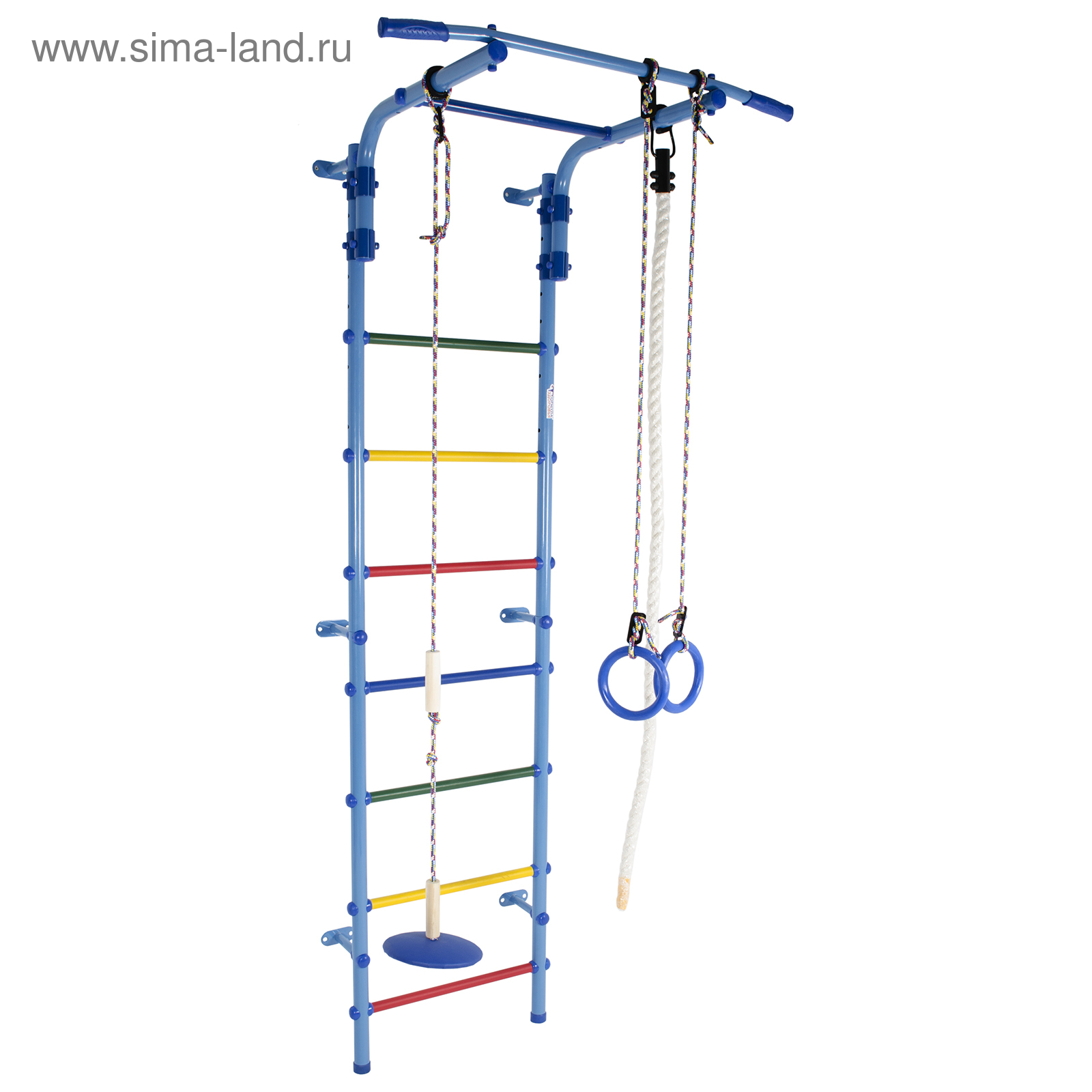 Детский спортивный комплекс start 2, цвет голубой/радуга. Возраст: От 3 лет Maксимальная нагрузка, кг: 80 Maксимальная нагрузка, кг: 120 Ширина комплекса, мм: 525 Материал: Металл Тип крепления: К стене Комплектация: Канат Комплектация: Регулируемый турник Комплектация: Комплекс Комплектация: Кольца Комплектация: Тарзанка Высота комплекса, мм: 2170 Тип ступеней: С покрытием Температурное ограничение: Нет  развернуть описание ▼