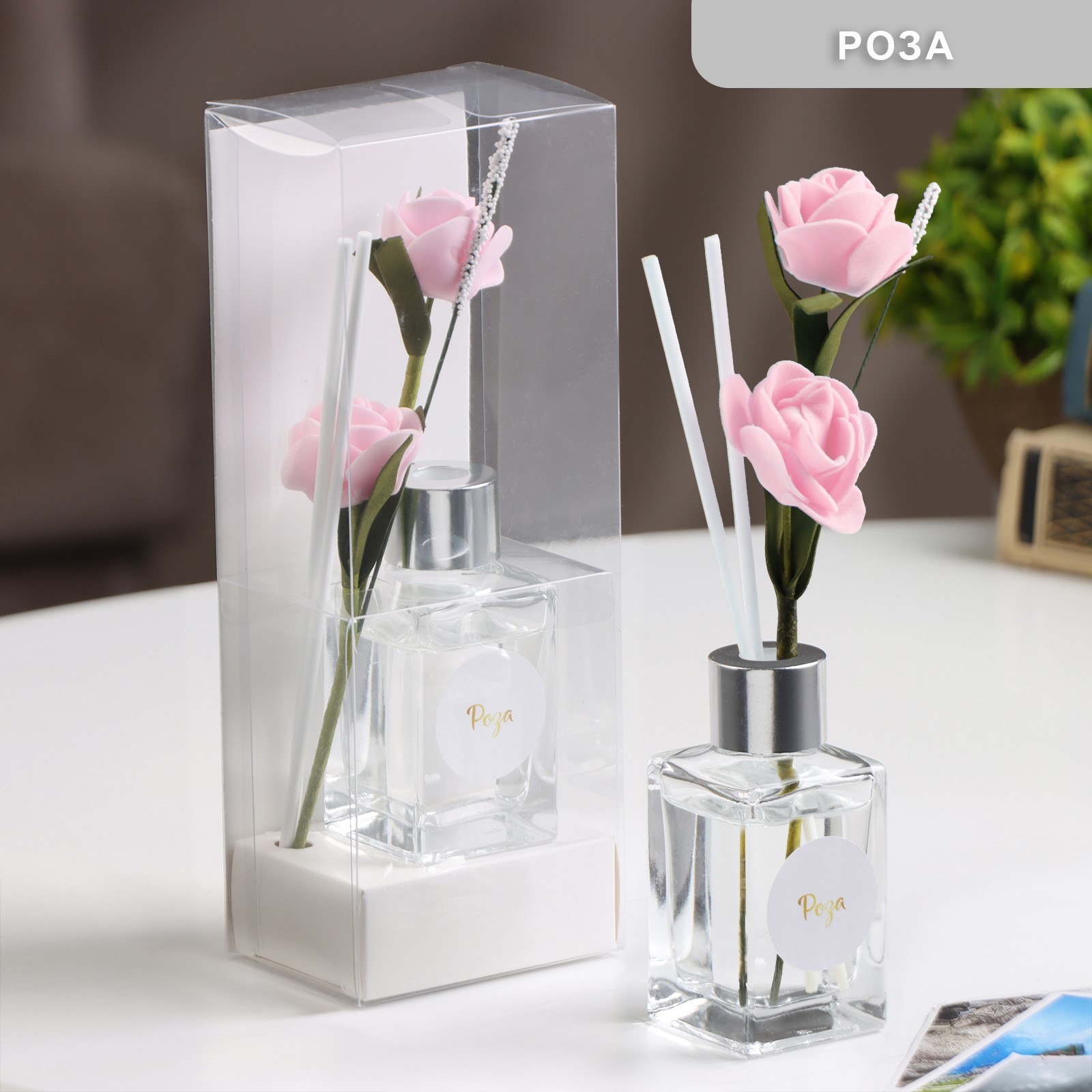 Диффузор ароматический с цветком "классика", 50 мл, роза, "богатство аромата". Диффузор — это безопасный, экологически чистый и натуральный способ ароматизации помещения, является прекрасной альтернативой ароматизированным спреям. Чтобы аромат оставался насыщенным, 1–2 раза в день доставайте палочки и переворачивайте их, вставляя другим концом в стеклянную колбу. Интенсивность аромата зависит от влажности воздуха (в более влажном помещении летучесть аромата сильнее), проветриваемости помещения и количества палочек. Объём, мл: 50 Вид ароматизатора: Диффузор Аромат: Роза  развернуть описание ▼