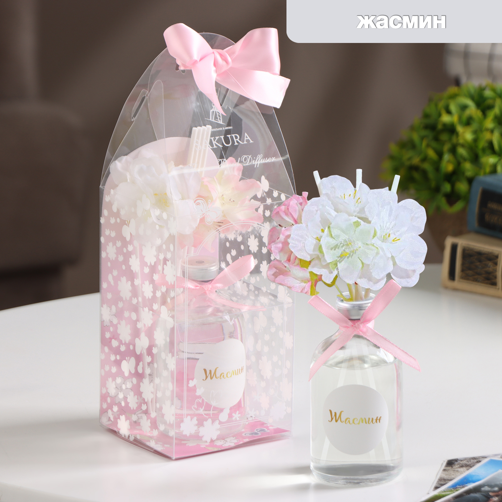 Диффузор ароматический с декором "сакура", 100 мл, жасмин, "богатство аромата"