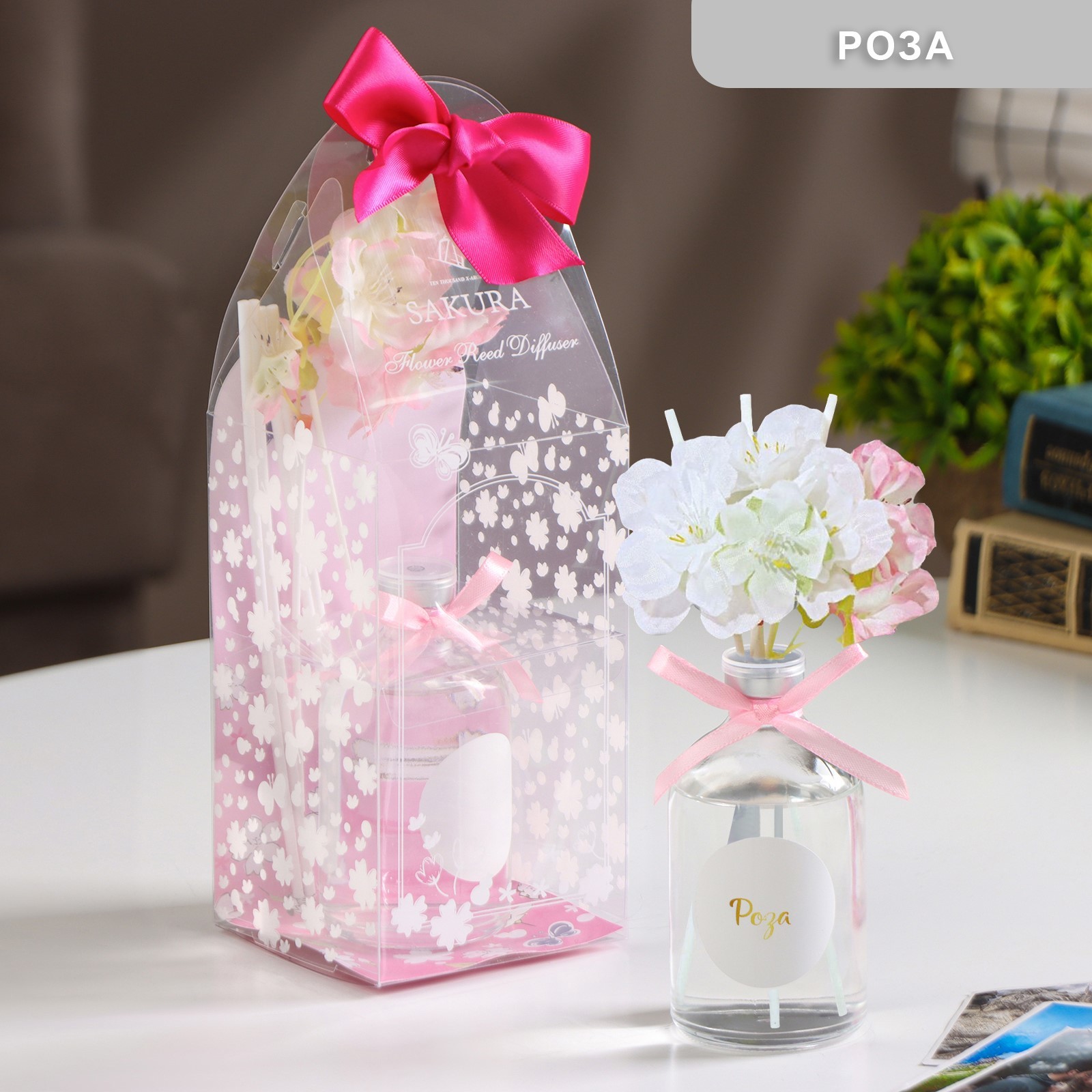 Диффузор ароматический с декором "сакура", 100 мл, роза, "богатство аромата"