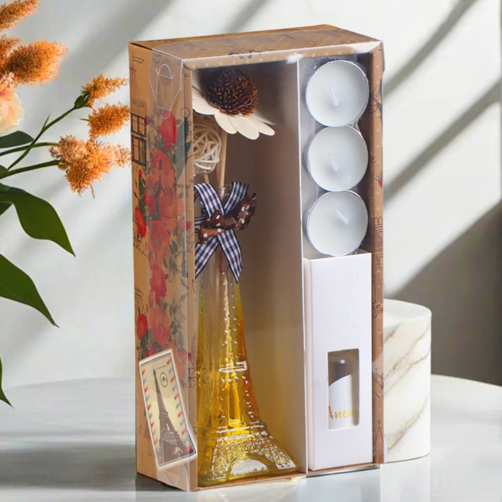 Набор подарочный "париж" (диффузор и свечи) апельсин, "богатство аромата" 8 марта. Ощутите волшебство Парижа прямо у себя дома с нашим уникальным набором в стиле Эйфелевой башни. Этот диффузор, выполненный в форме изящного символа Франции, не только наполнит ваш дом уютом, но и придаст ему неповторимый шарм. В комплекте с диффузором вы найдете чайные свечи, создающие приглушенное освещение и добавляющие нотки романтики в атмосферу, а также аромамасло, которое наполнит помещение нежным, умиротворяющим ароматом. Разгрузите свой день и погрузитесь в атмосферу спокойствия и расслабления с нашим набором, который привнесет в вашу жизнь частичку волшебства Парижа. Для кого: Для женщины Для кого: Унисекс В наборе, шт.: 4 Объём, мл: 30 Вид упаковки: Коробка Адресат: Без адресата Вид ароматизатора: Свеча Вид ароматизатора: Диффузор Вид ароматизатора: Аромамасло Аромат: Апельсин Составляющие набора: Декор Составляющие набора: Аромамасло Составляющие набора: Свеча Составляющие набора: Ваза Возраст: Для взрослых Тематика подарка: Интерьер  развернуть описание ▼