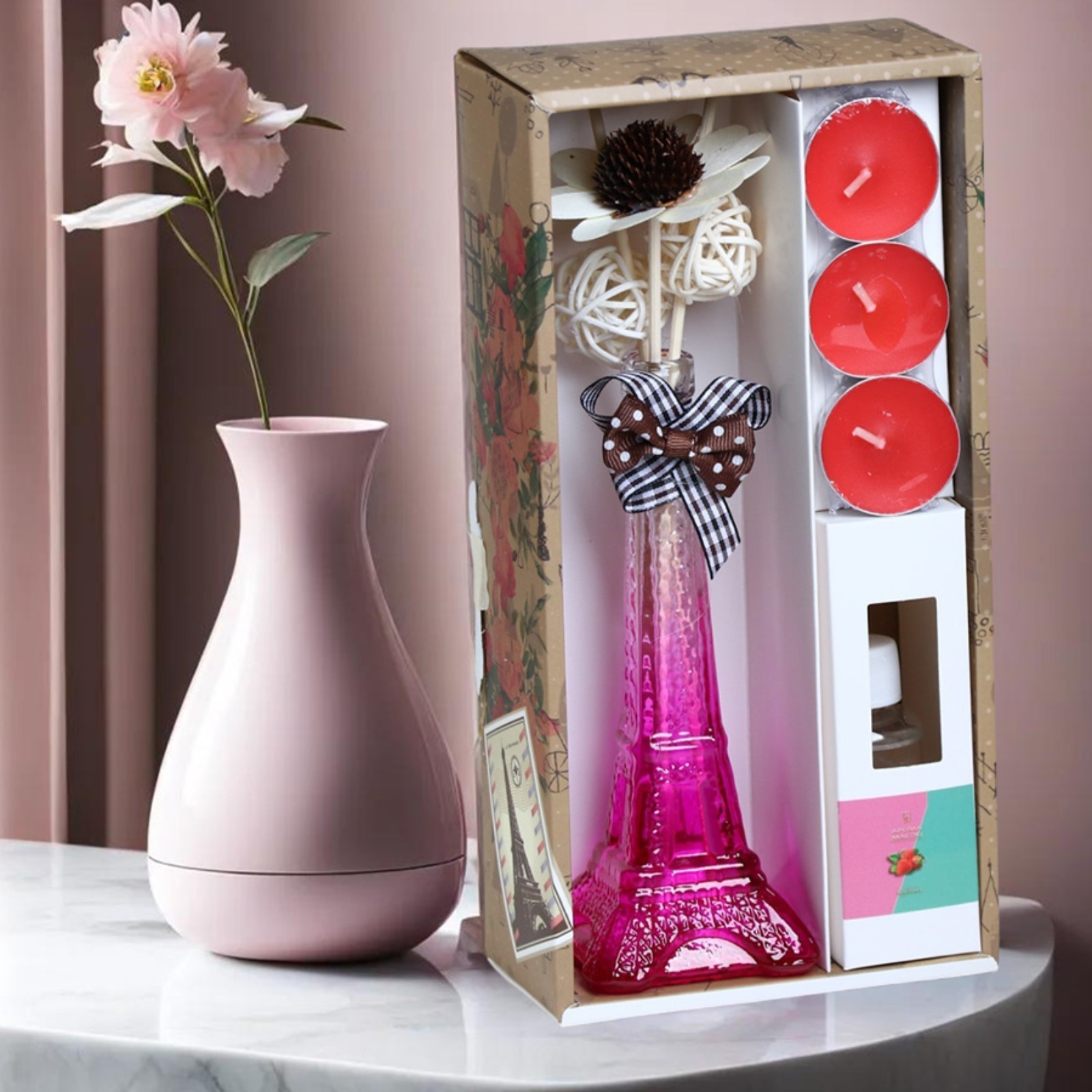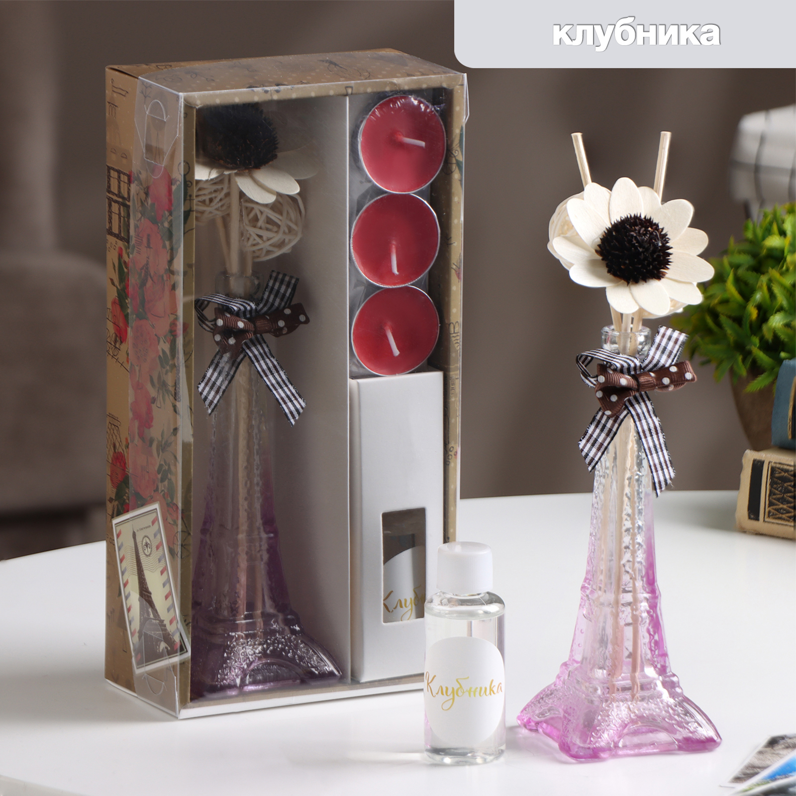 Набор подарочный "париж" (диффузор и свечи) клубника, "богатство аромата" 8 марта. Ощутите волшебство Парижа прямо у себя дома с нашим уникальным набором в стиле Эйфелевой башни. Этот диффузор, выполненный в форме изящного символа Франции, не только наполнит ваш дом уютом, но и придаст ему неповторимый шарм. В комплекте с диффузором вы найдете чайные свечи, создающие приглушенное освещение и добавляющие нотки романтики в атмосферу, а также аромамасло, которое наполнит помещение нежным, умиротворяющим ароматом. Разгрузите свой день и погрузитесь в атмосферу спокойствия и расслабления с нашим набором, который привнесет в вашу жизнь частичку волшебства Парижа. Для кого: Унисекс parts count: 0 В наборе, шт.: 4 Объём, мл: 30 Вид упаковки: Коробка Адресат: Без адресата Вид ароматизатора: Диффузор Вид ароматизатора: Свеча Вид ароматизатора: Аромамасло Аромат: Клубника Составляющие набора: Аромамасло Составляющие набора: Ваза Составляющие набора: Свеча Составляющие набора: Декор Возраст: Для взрослых Тематика подарка: Интерьер  развернуть описание ▼