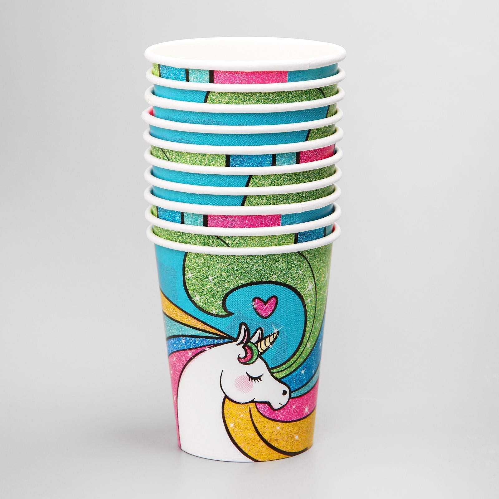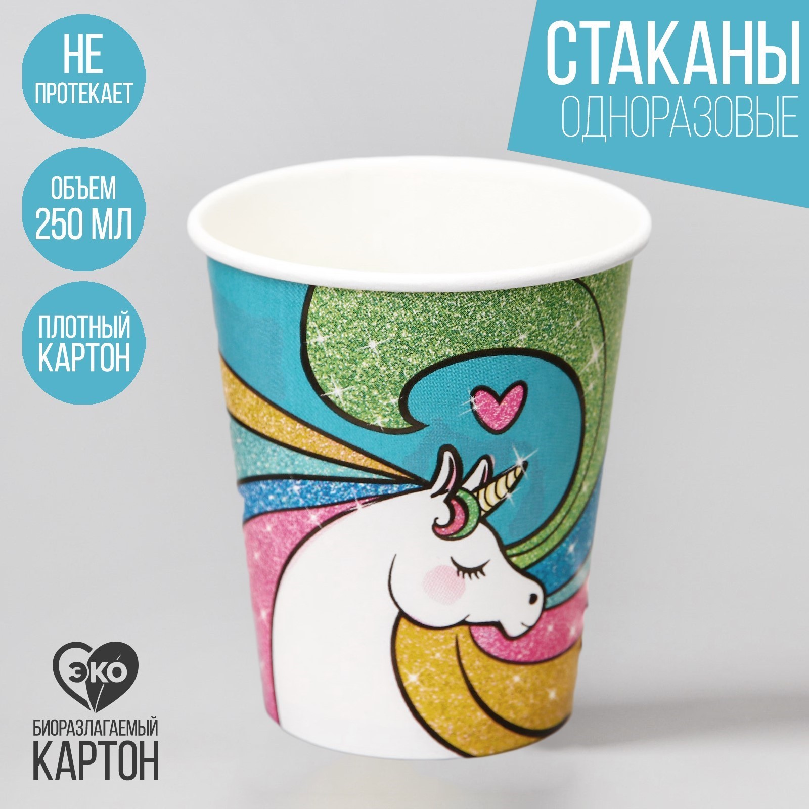 Стакан одноразовый бумажный "радужный единорог", 250 мл