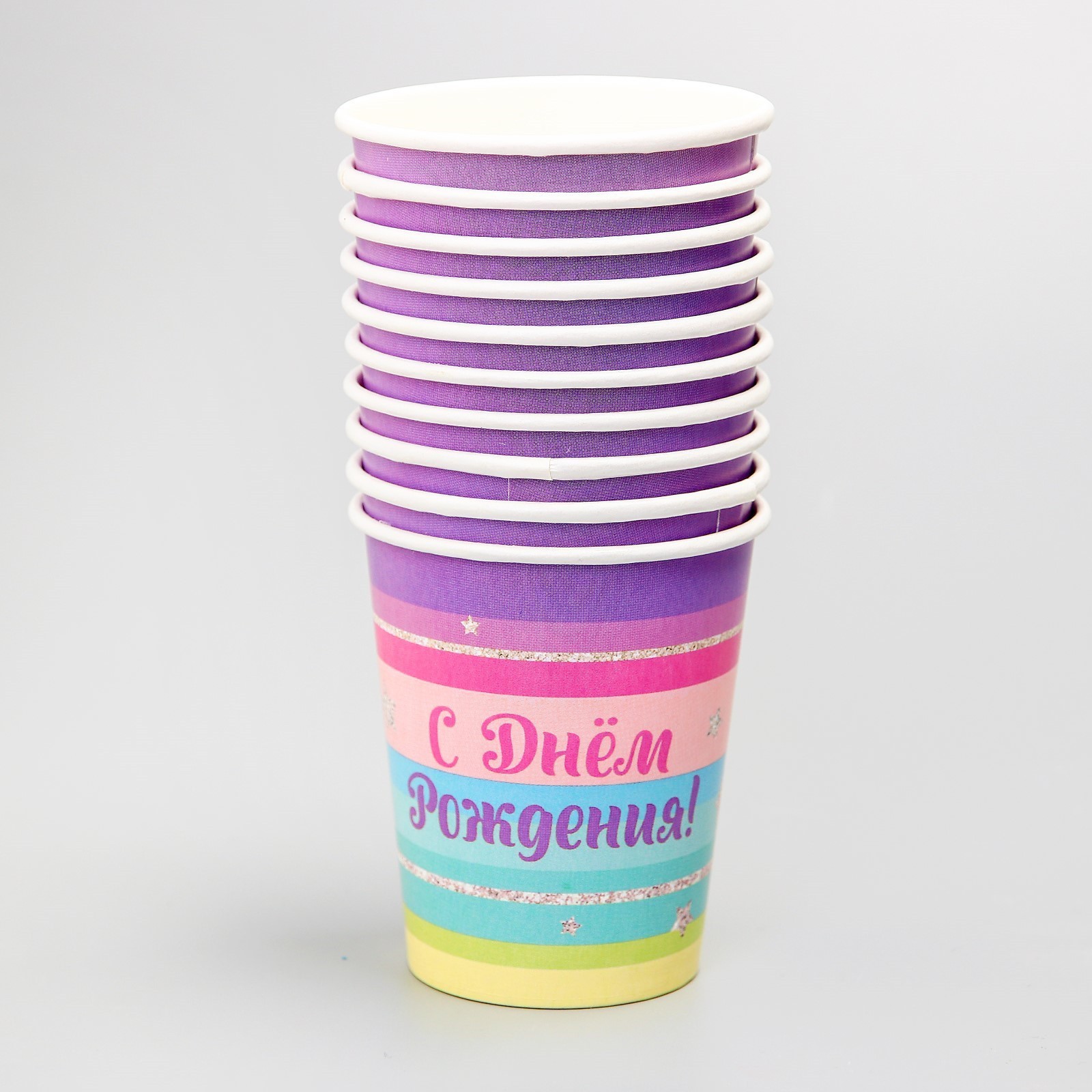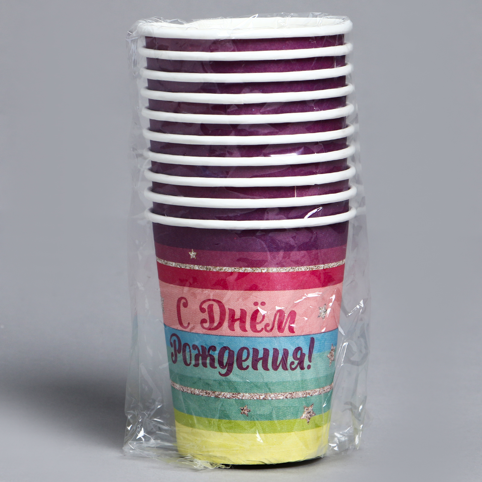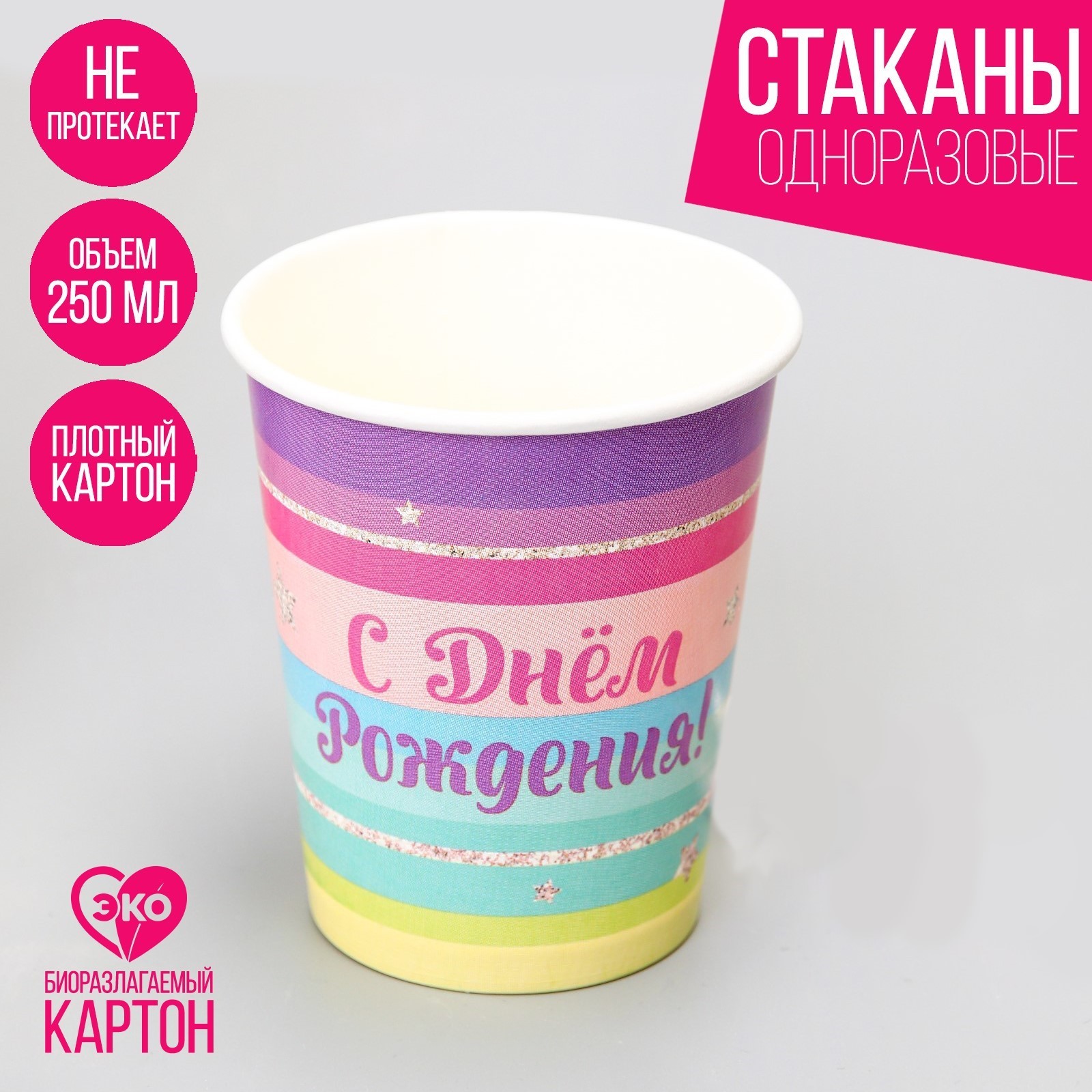 Стакан одноразовый бумажный "с днём рождения" полосы, 250 мл