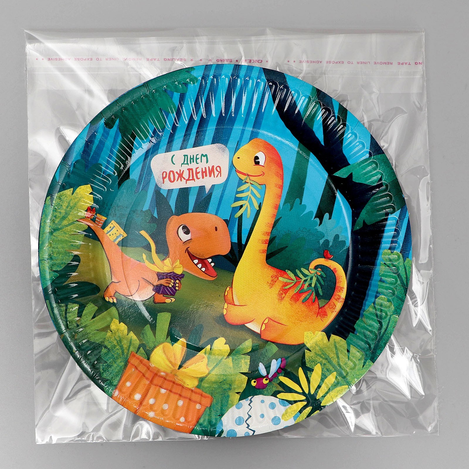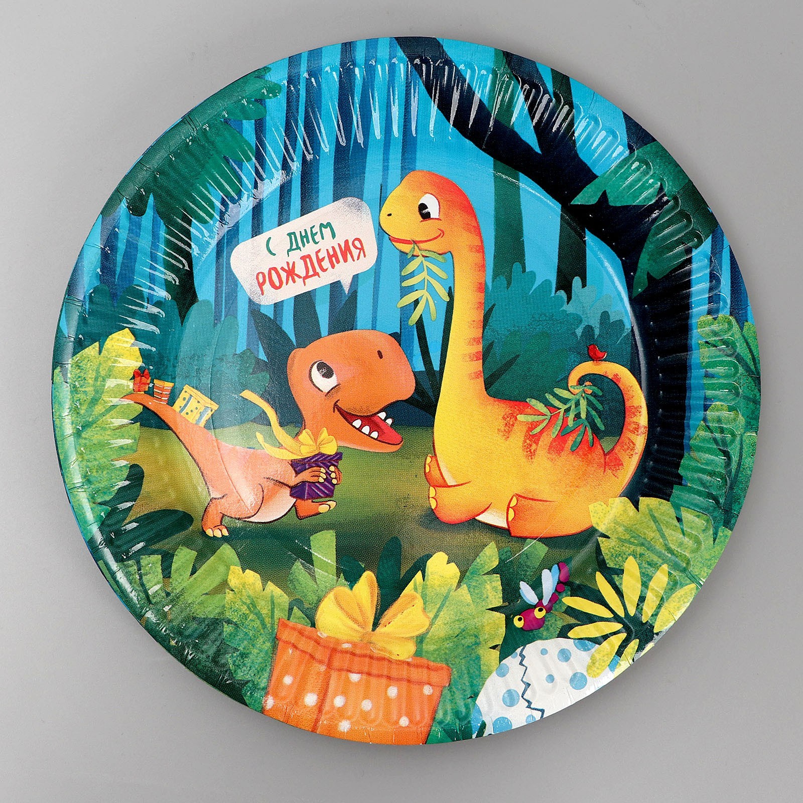 Тарелка одноразовая бумажная "с днём рождения" динозаврики, 18 см