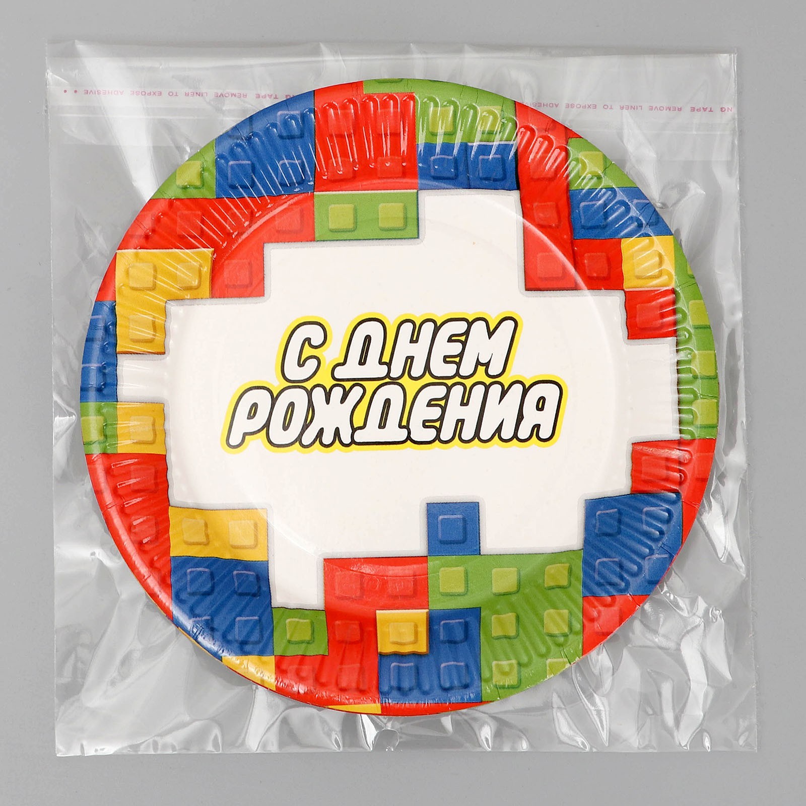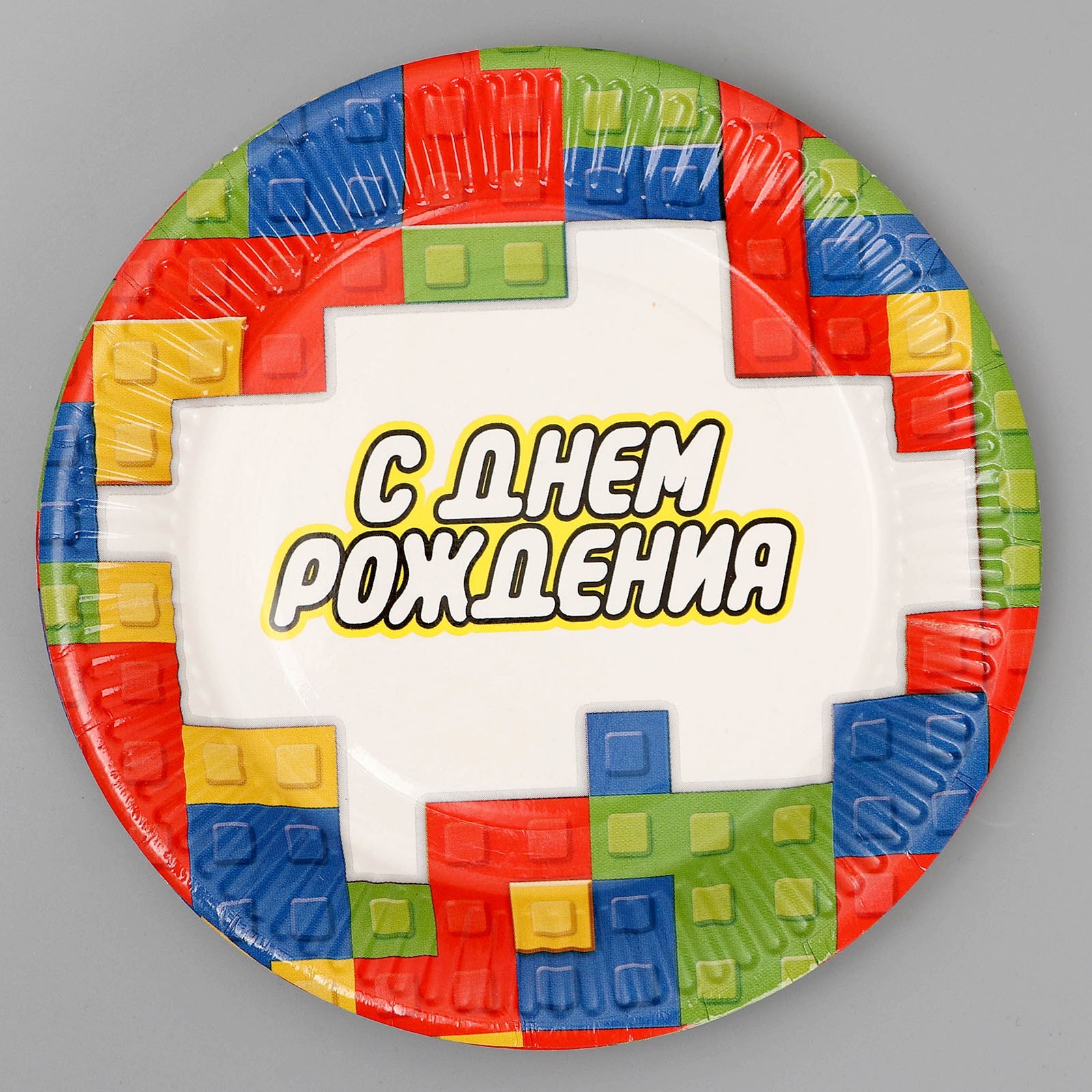 Тарелка одноразовая бумажная "с днём рождения" кубики, 18 см
