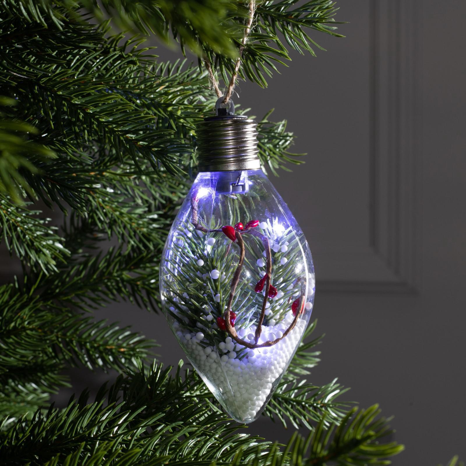 Ёлочный шар «ветка ели», 5 Led, от батареек, свечение белое