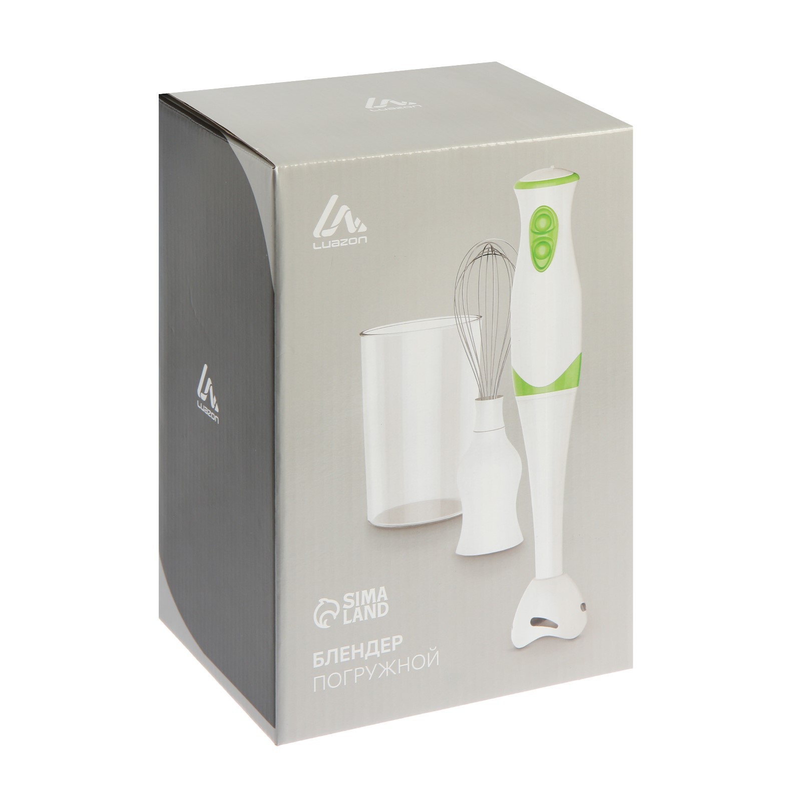 Блендер Luazon Lbr-26, погружной, 300 вт, 0.6 л, 2 скорости, бело-зелёный