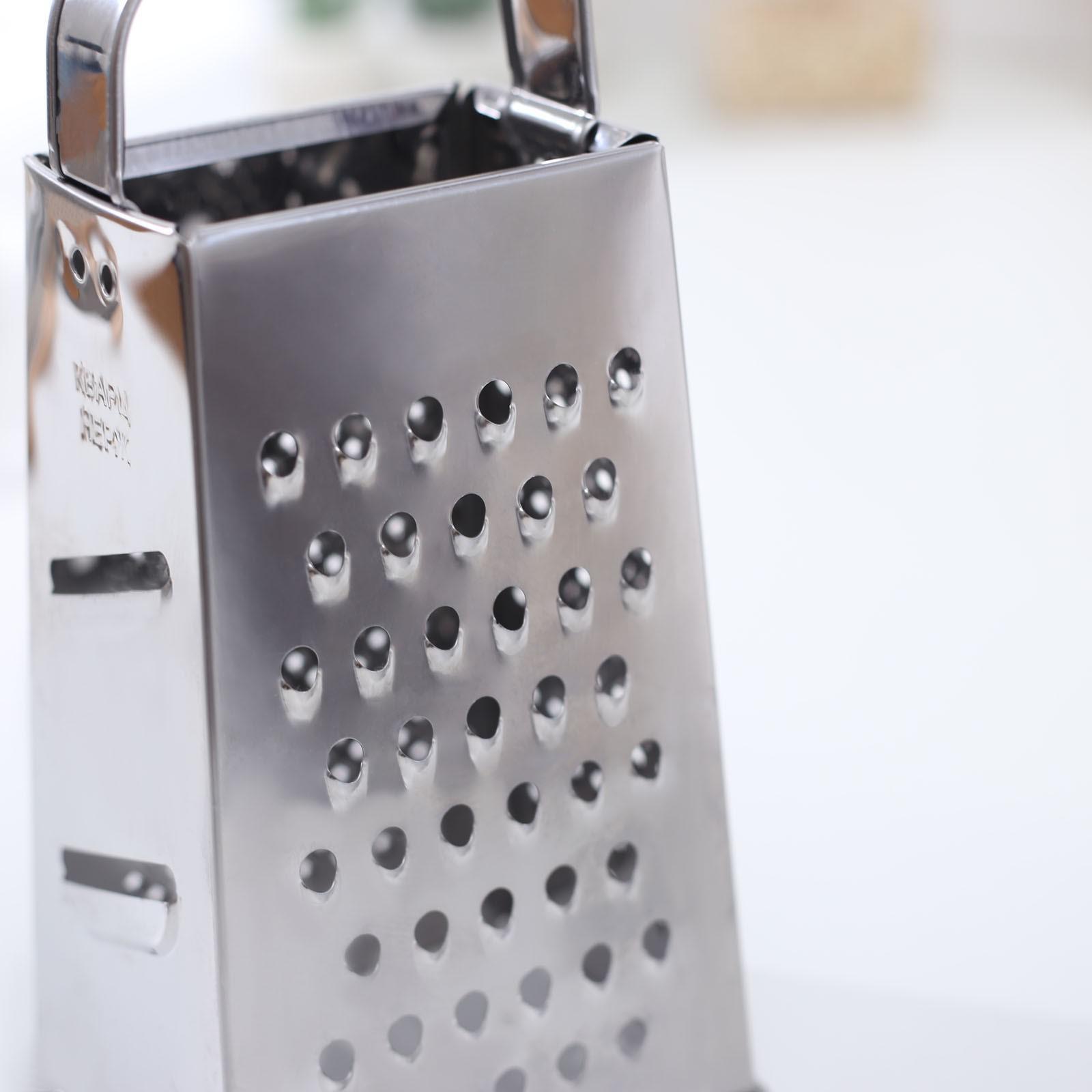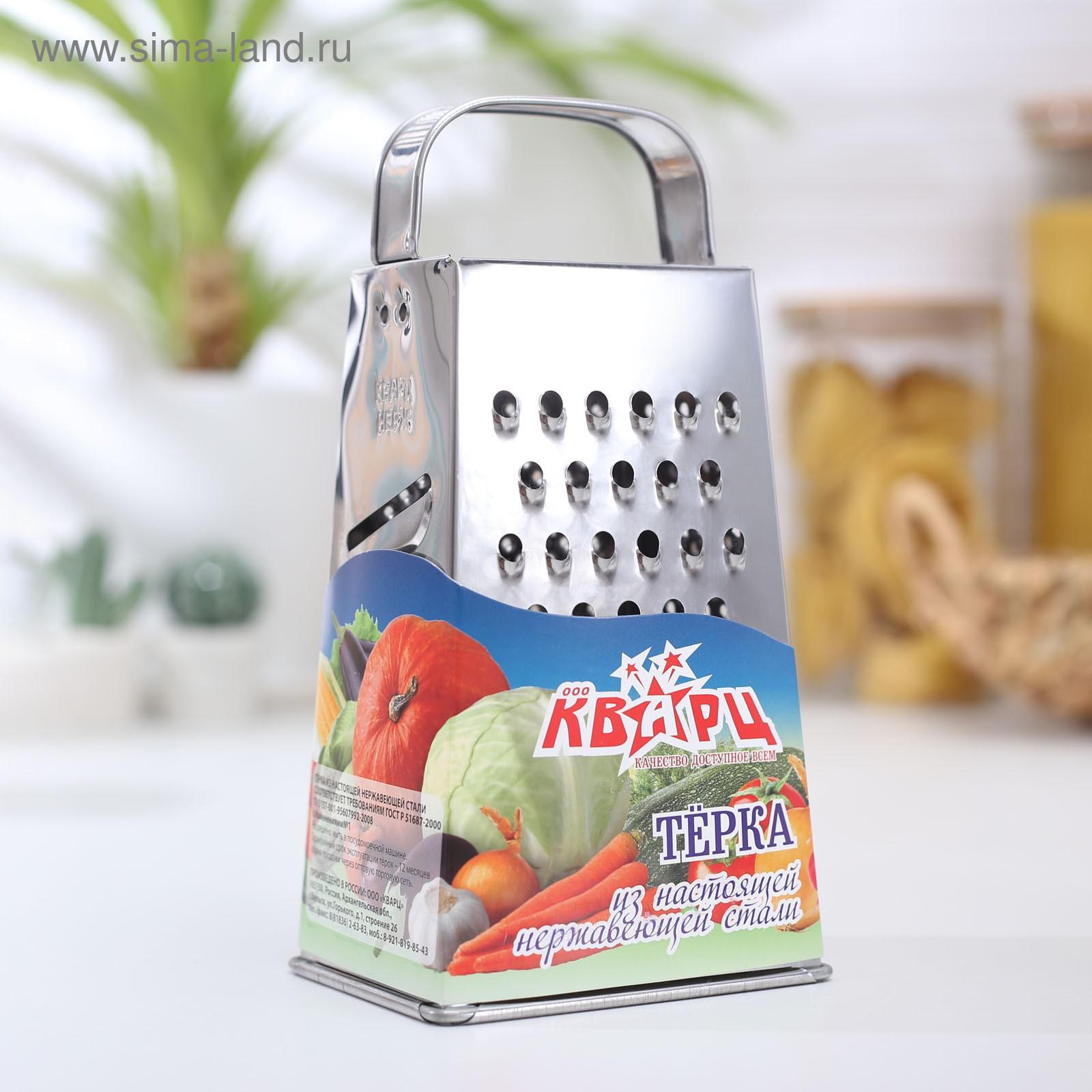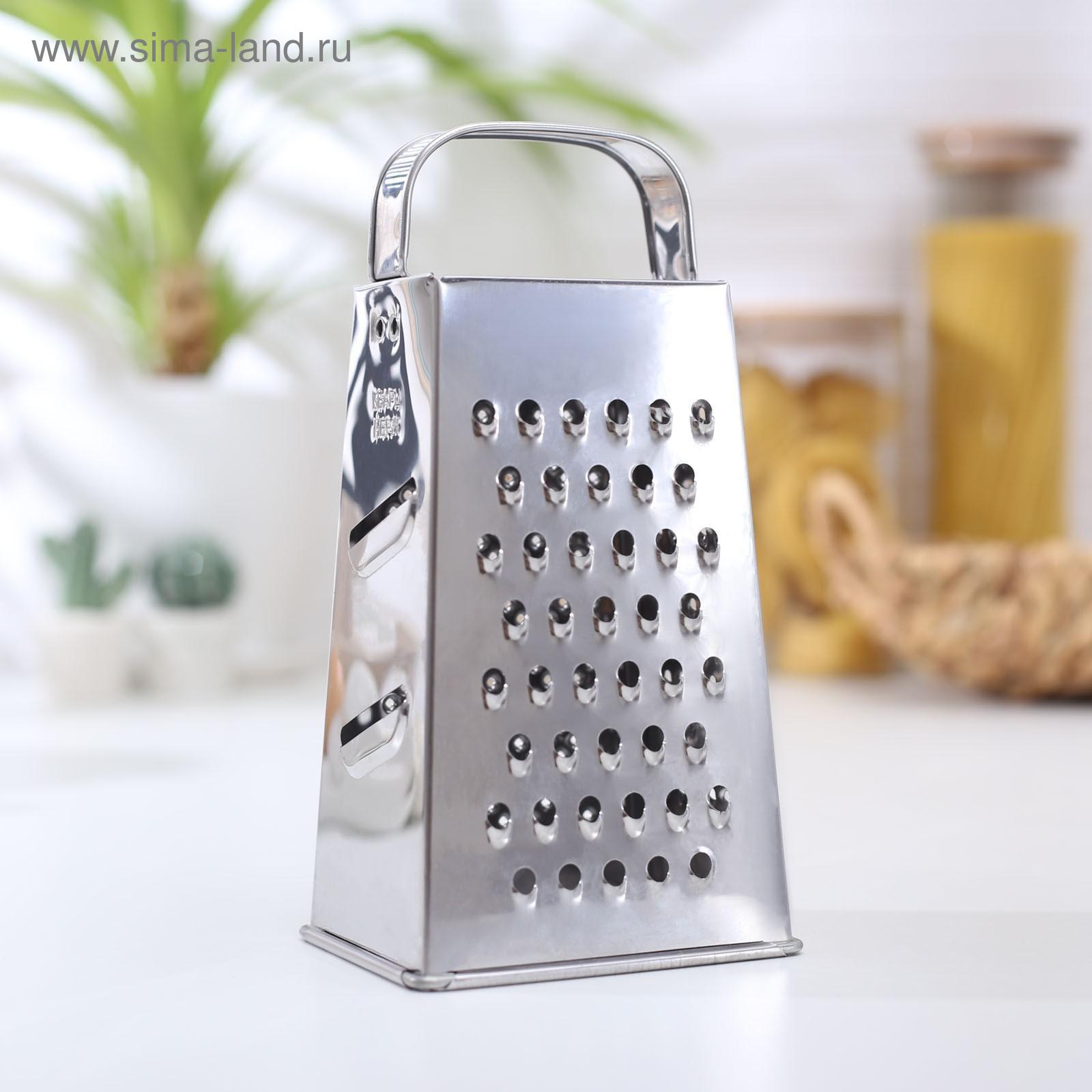 Тёрка «сталь», 4 грани, из нержавеющей стали, 9x12x21 см. Тёрка — необходимый кухонный помощник в каждом доме! Это многофункциональный и долговечный инструмент. Многие хозяйки даже не догадываются о том, сколько всего можно приготовить, если использовать все рабочие поверхности тёрки. Крупные отверстия предназначены для овощей, сыра, яиц, шоколада и масла. Мелкие отверстия предназначены для украшения стружкой или для измельченной нарезки. С колючей стороной тёрки нужно быть осторожным, чтобы не нанести травму. Она предназначения для измельчения чеснока, острого перца, орехов, сухарей, имбиря. А также поможет снять цедру с цитрусовых. Продолговатые отверстия предназначены для нарезки овощных и фруктовых слайсов. С помощью неё можно приготовить рататуй, домашние картофельные чипсы, луковые кольца, запеканку из кабачков и многое другое. parts count: 0 Число граней: 4 tnved: 8205510090 Материал: Металл Контейнер: Нет Температурное ограничение: Нет Противоскользящее основание: Нет  развернуть описание ▼