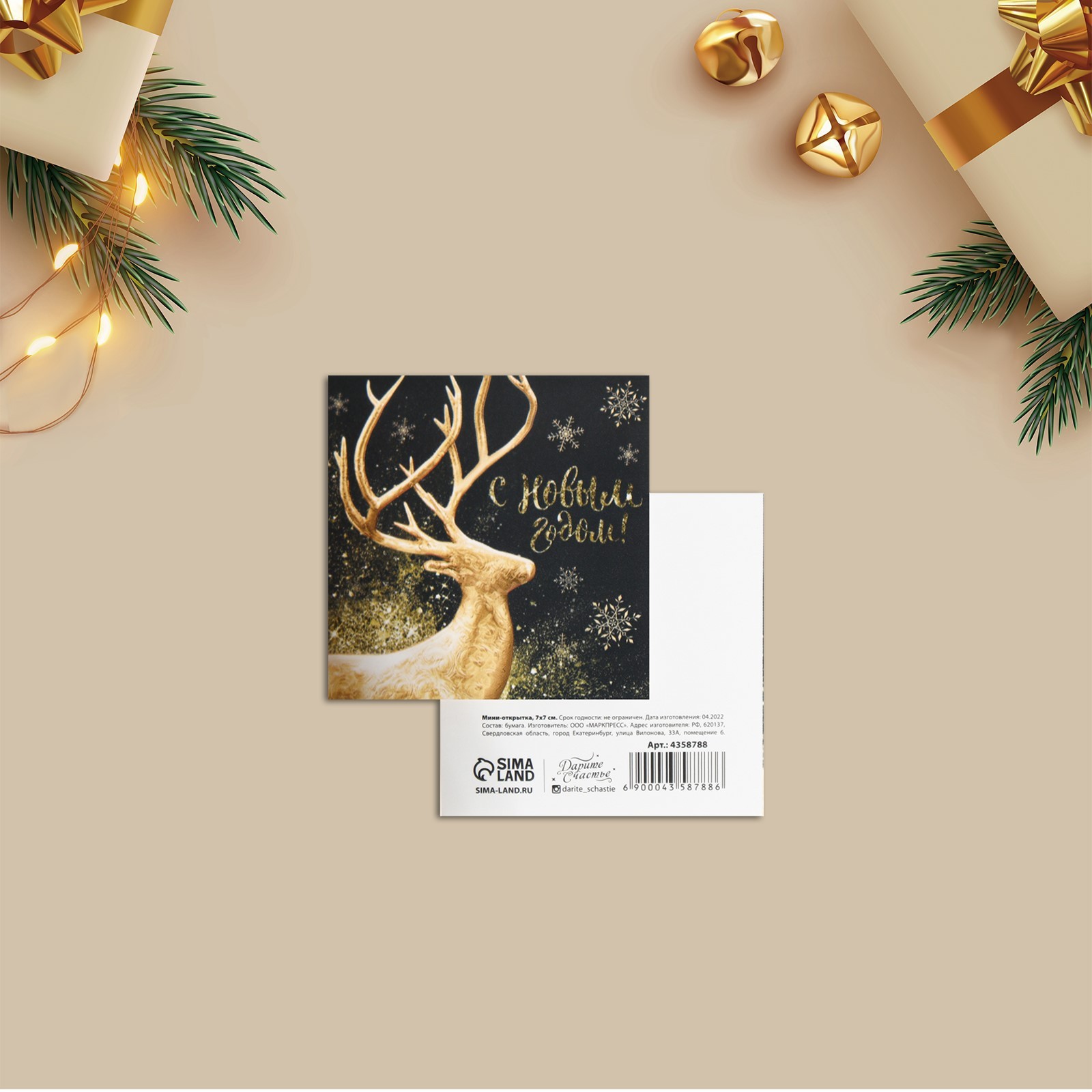 Открытка-мини «с новым годом!», 7 х 7 см