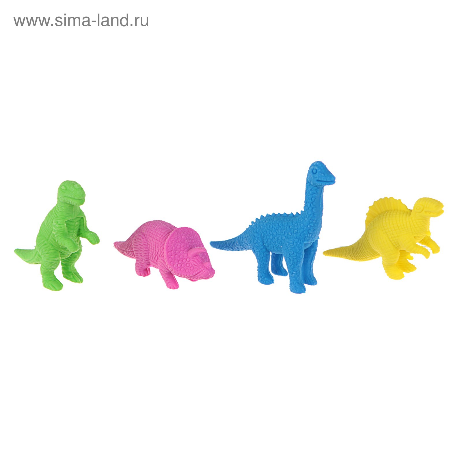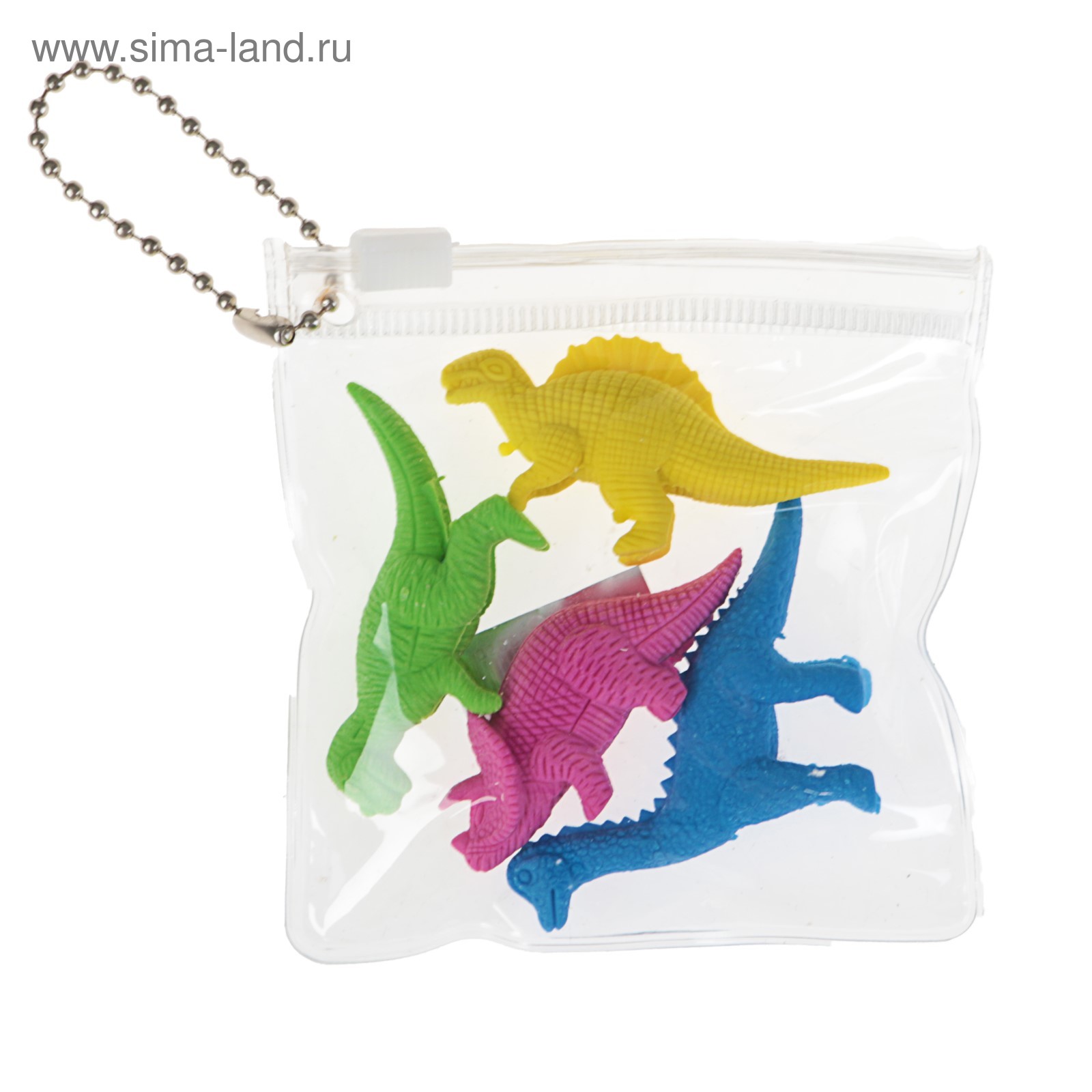 Набор ластиков фигурных 4 штуки динозавры в пакете на зип-молнии (штрихкод на штуке) микс
