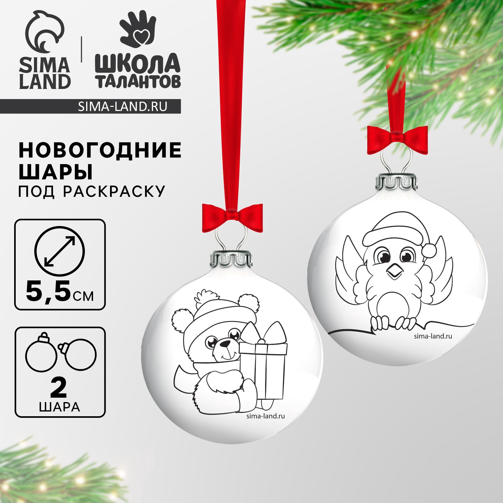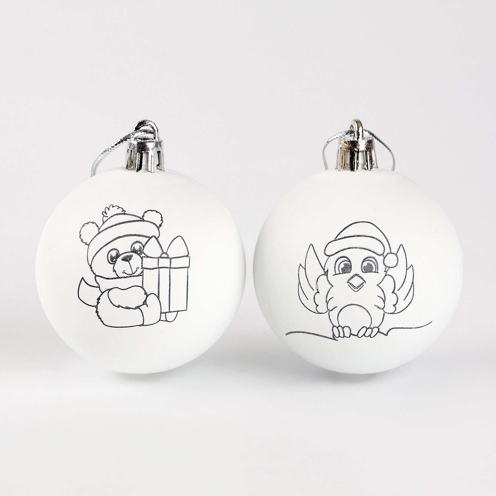 Ёлочные шары под раскраску на новый год «мишка и снегирь», 2 шт, D=5.5 см, набор для творчества