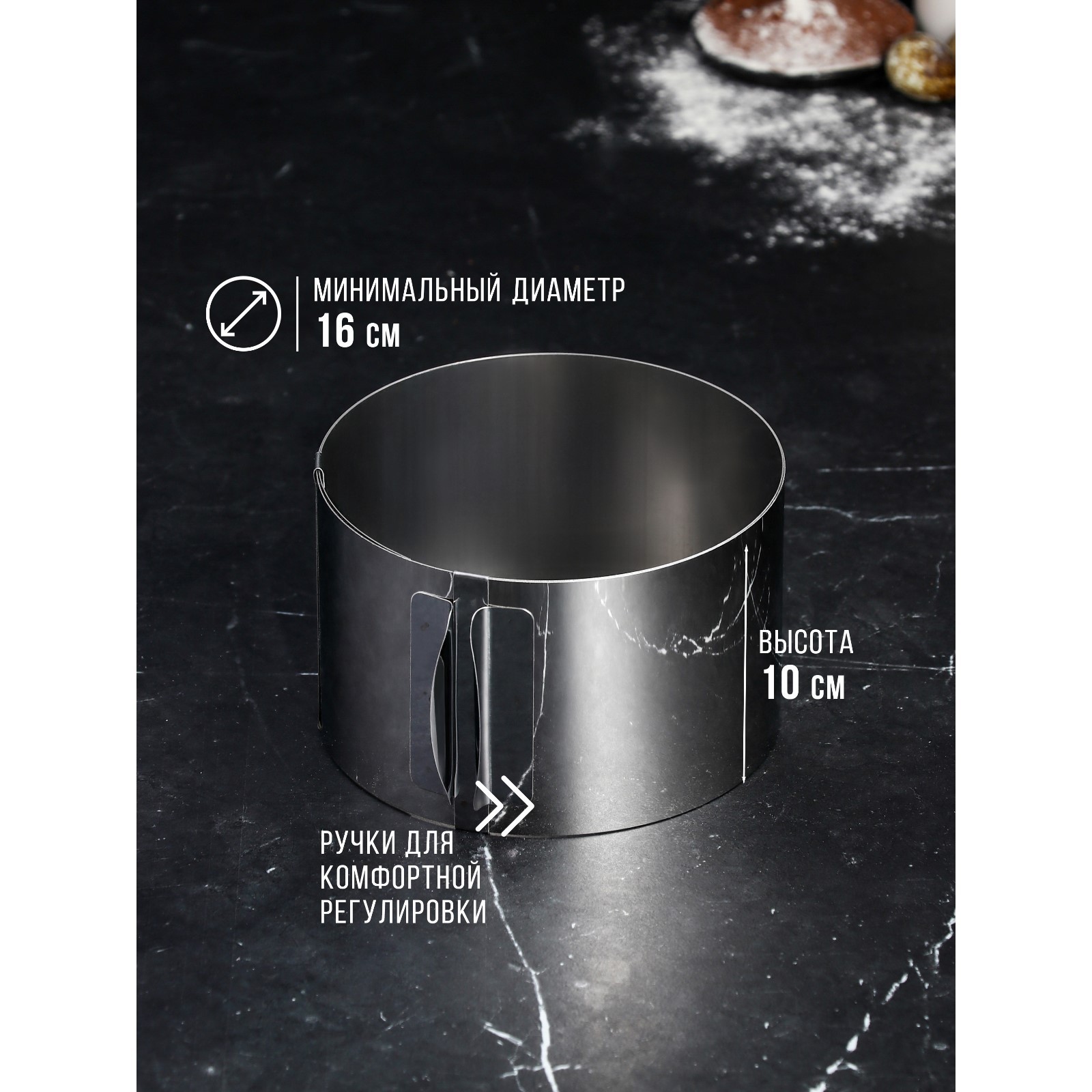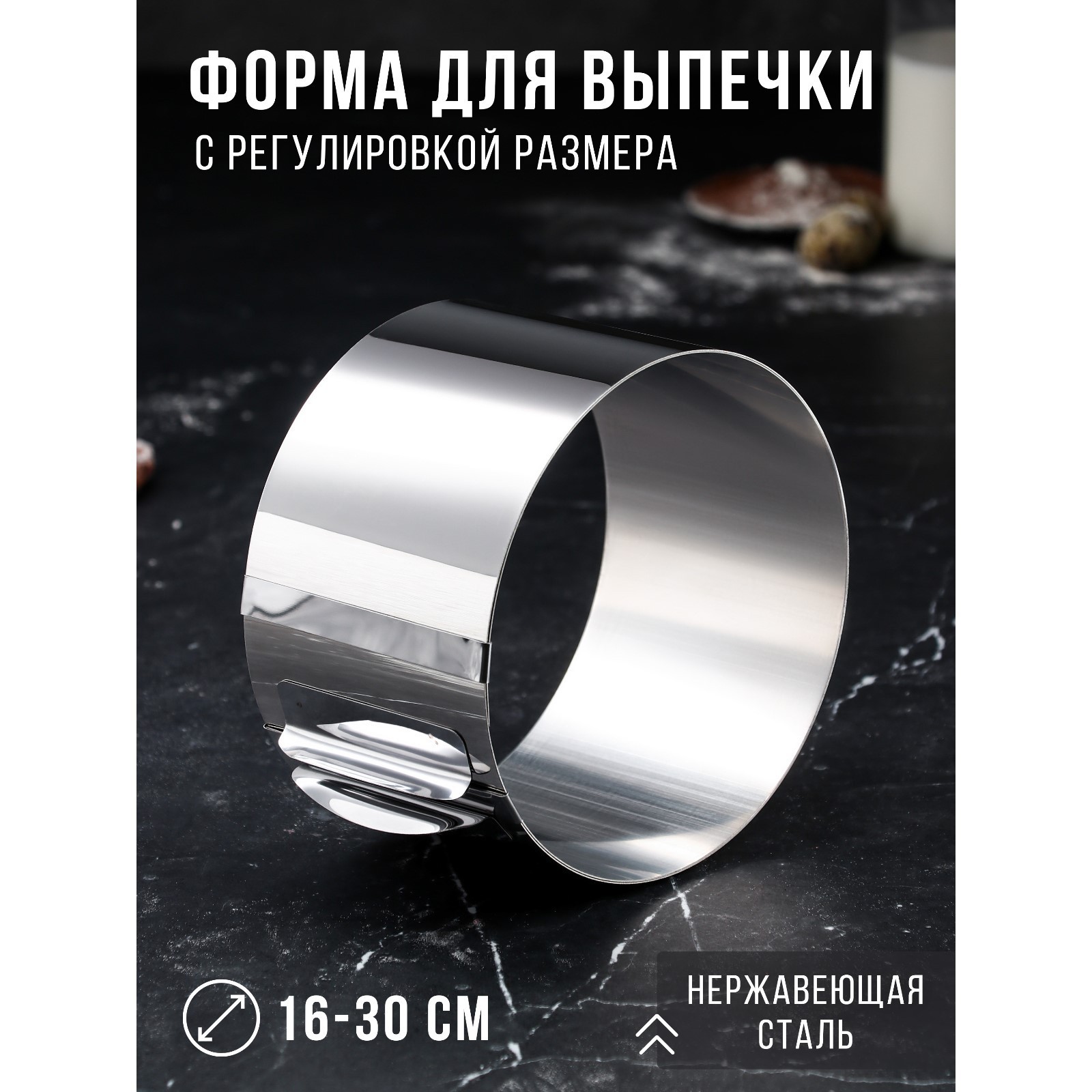 Форма для выпечки и выкладки с регулировкой размера «круг», H-10 см, D-16-30 см