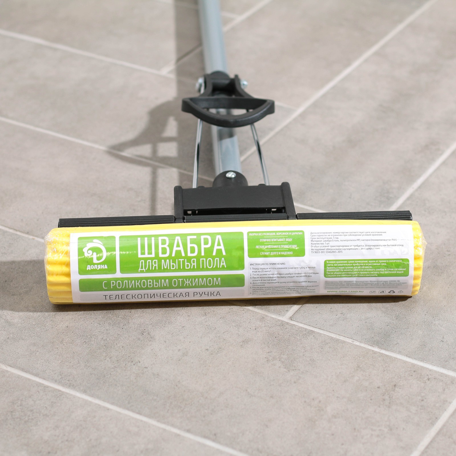Швабра для мытья пола доляна, Pva с роликовым отжимом, 120 см, телескопическая ручка 70-105 см, насадка 27x6 см, цвет микс