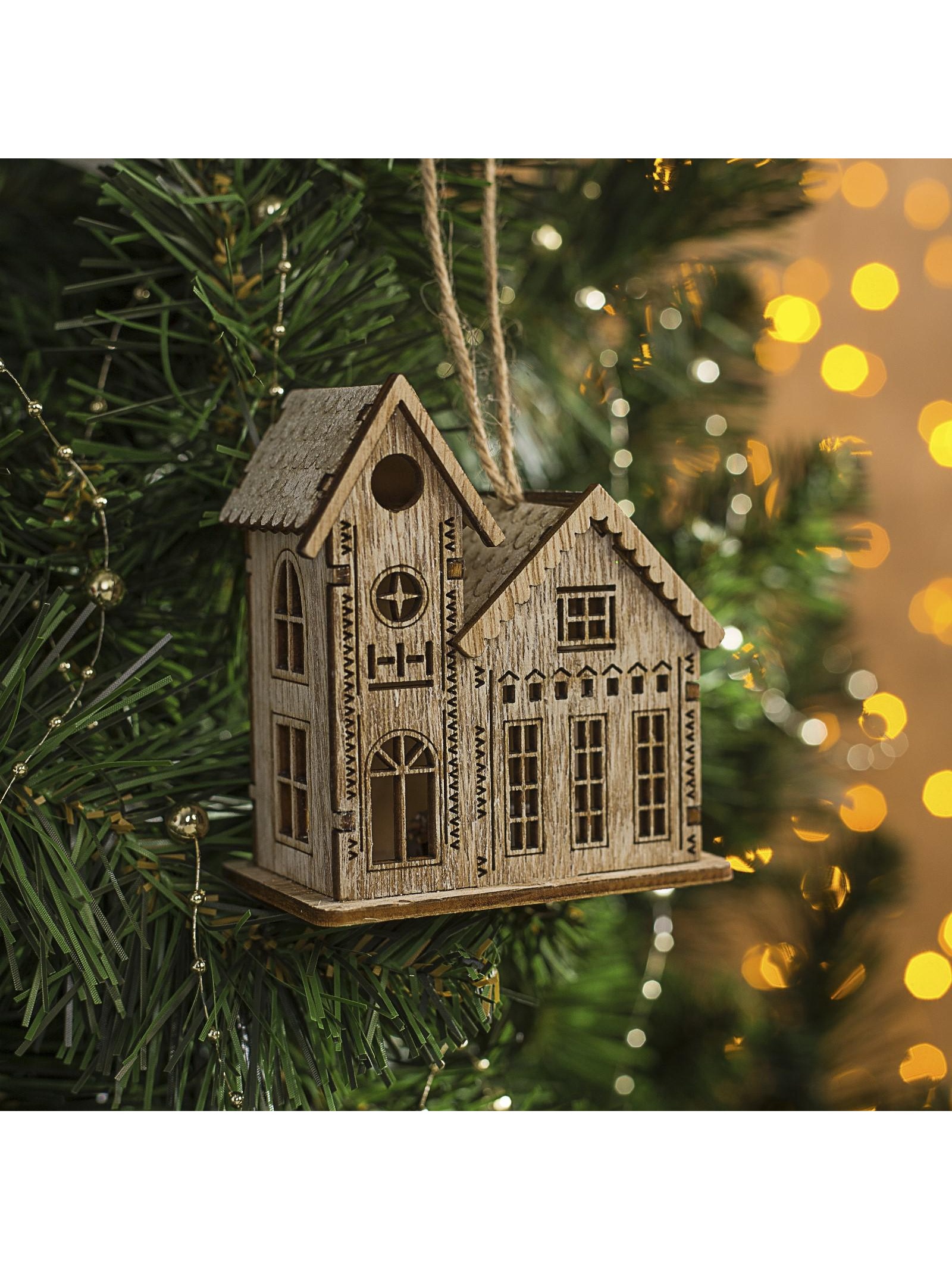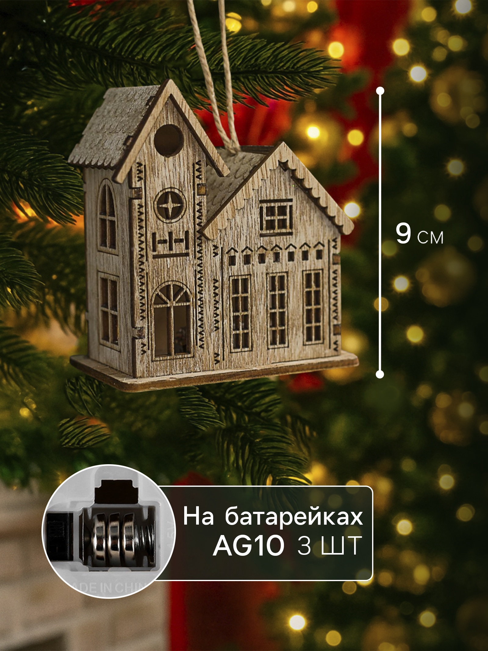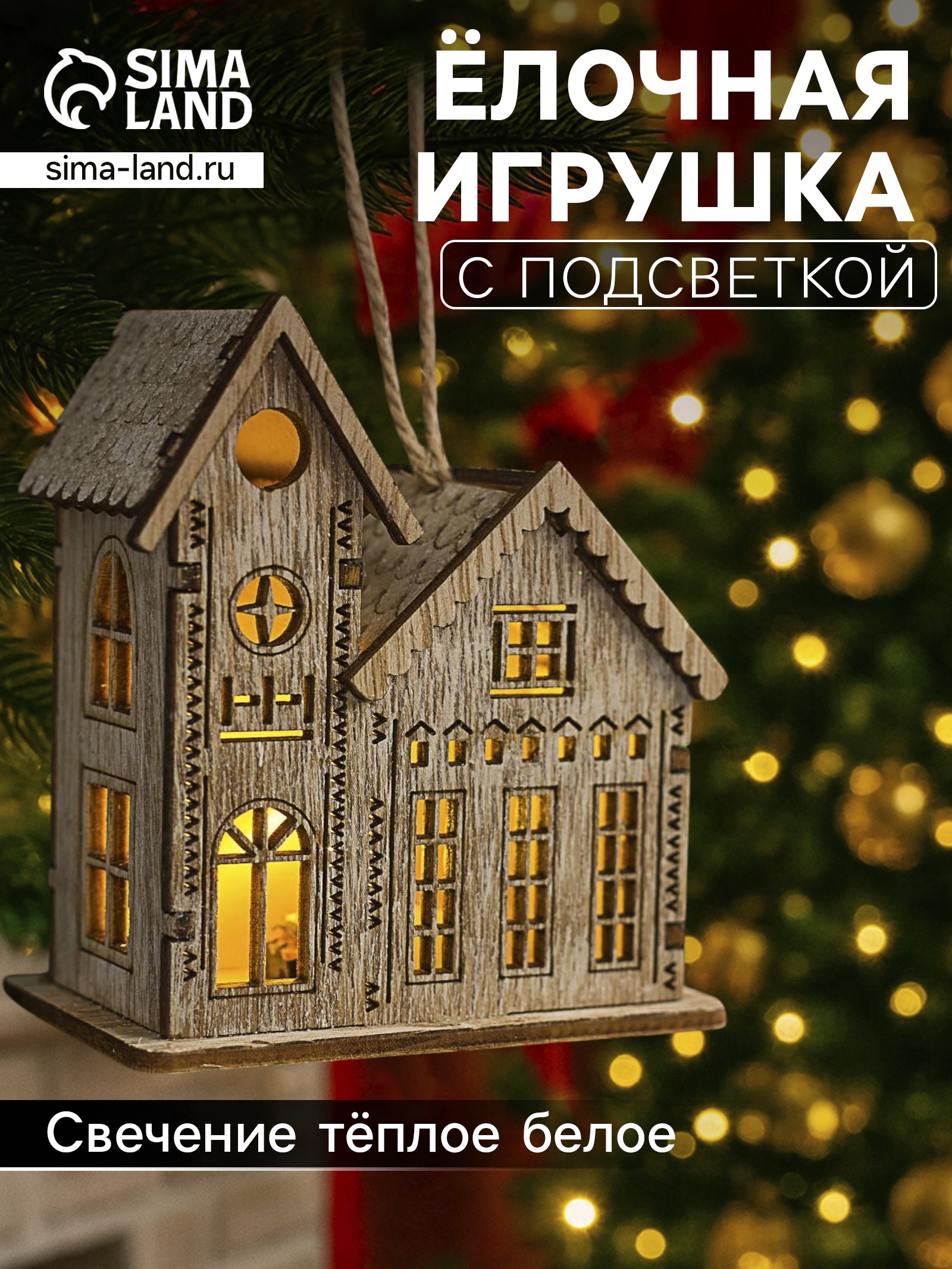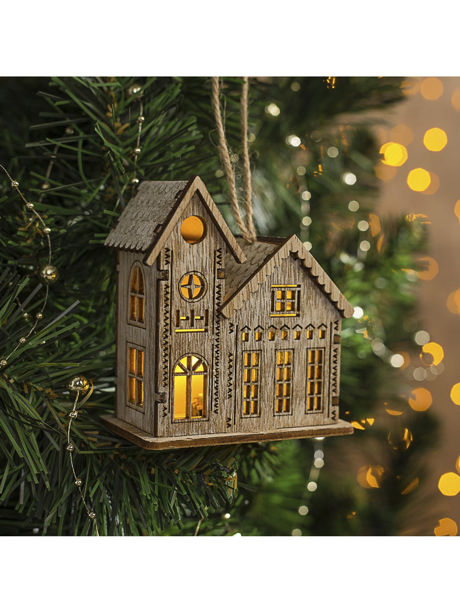 Ёлочная игрушка «домик с башней», 9х5х8 см, 1 Led, от батареек, свечение тёплое белое
