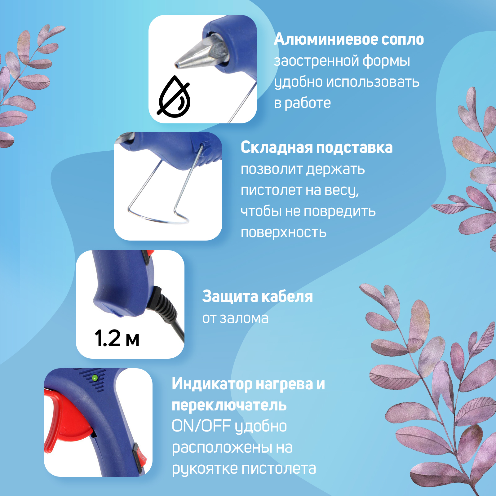 Клеевой пистолет тундра, 60 вт, 220 в, шнур 1.2 м, выключатель, индикатор, антикапля, 11 мм