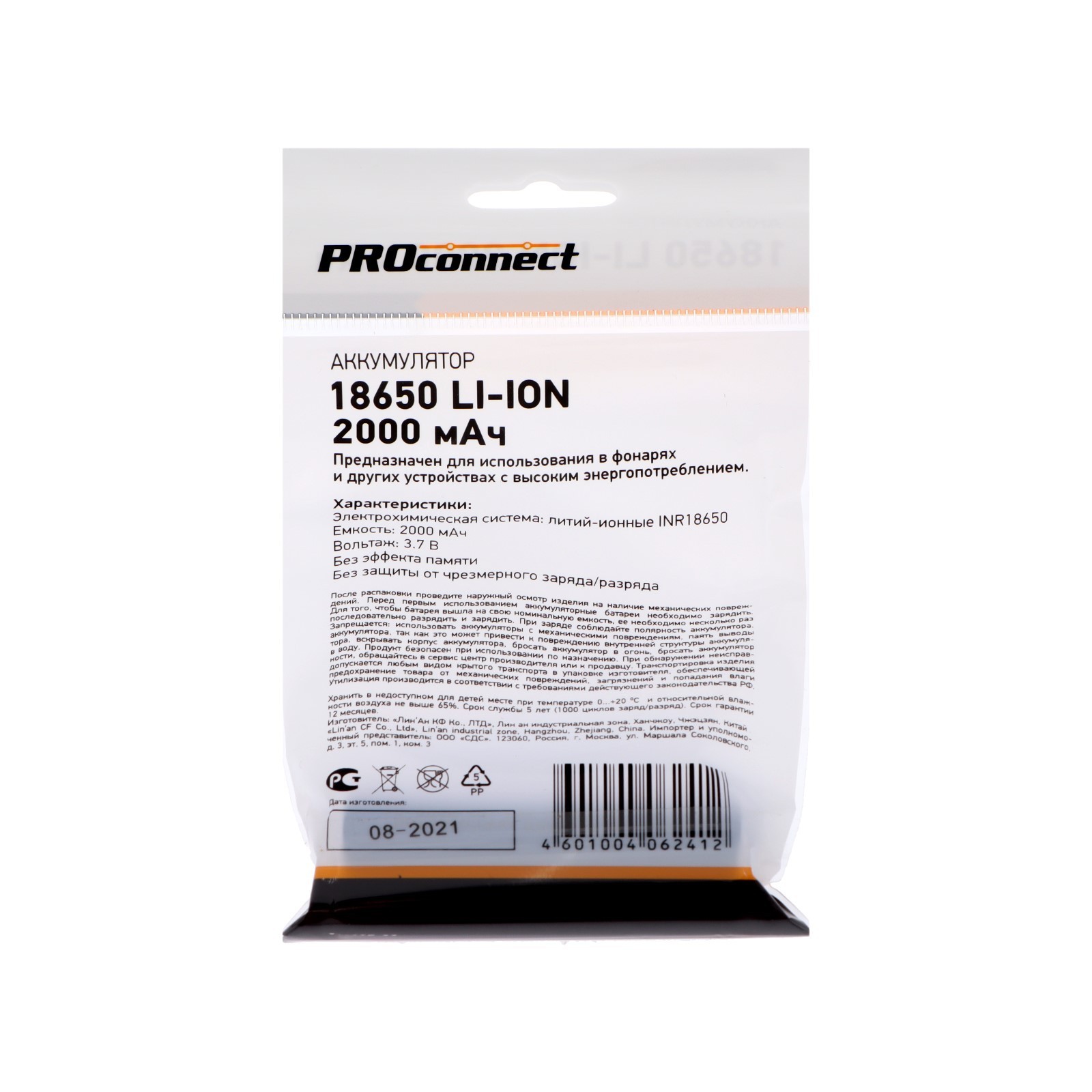 Аккумулятор Rexant, 18650 Unprotected, Li-ion, 2000 мач, 3.7 в, индивидуальная упаковка