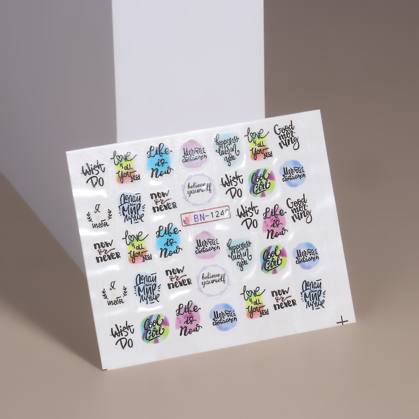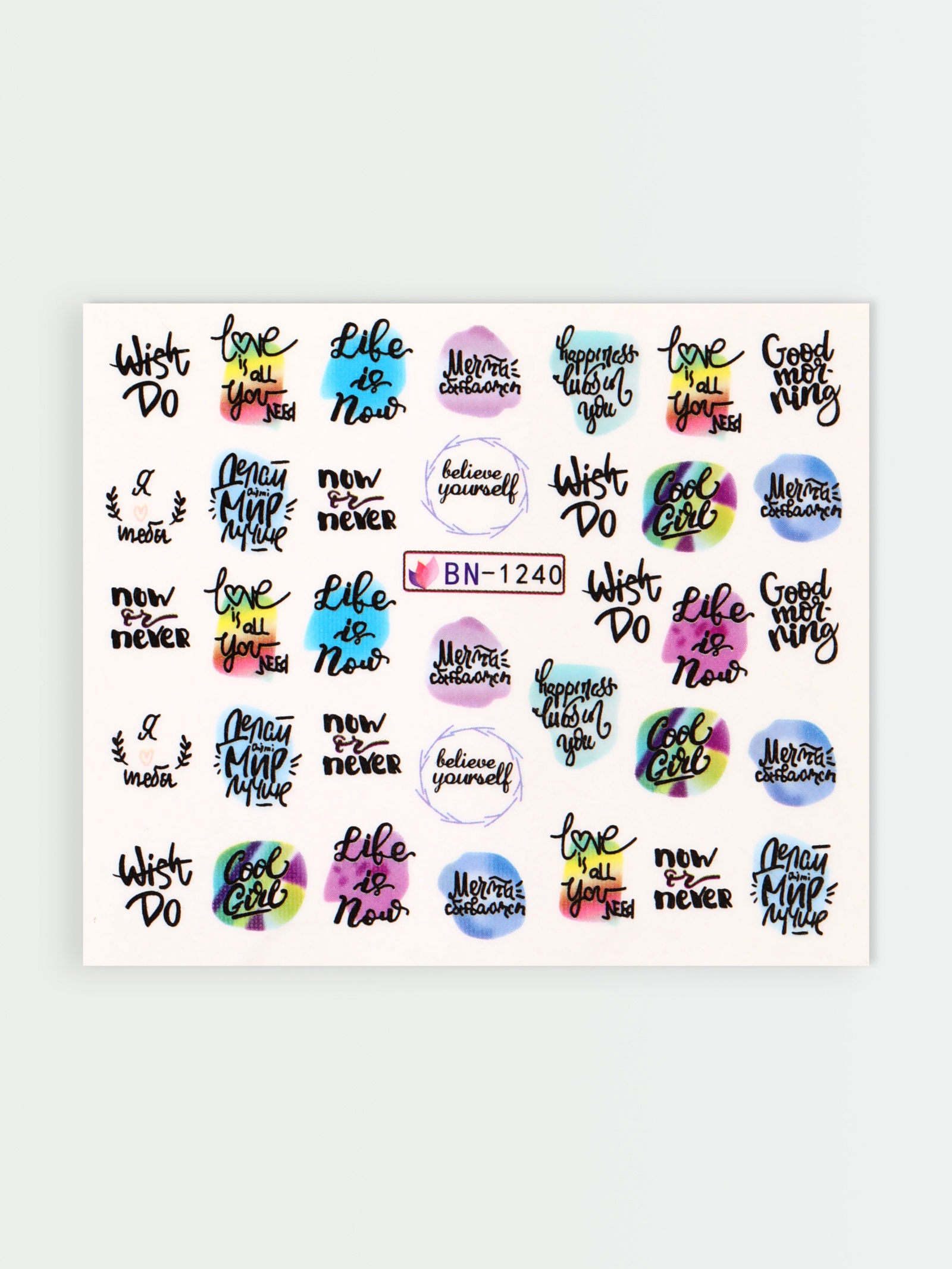 Слайдеры «мечты сбываются», разноцветные. Красивые рисунки приковывают внимание окружающих и делают дизайн ногтей уникальным, не требуя значительных затрат. Водные наклейки — это простой и недорогой способ украсить свой маникюр. Техника нанесения этих аксессуаров проста и доступна каждому, а их главная особенность в том, что получившееся изображение не отличить от выполненного вручную. Аксессуары не растягиваются, не прилипают к кончикам пальцев и не повреждают ноготки. Чтобы создать эту неповторимую красоту, необходимо: Сделайте маникюр и покройте ногти лаком.Вырежьте наклейку нужного размера по контуру.Удерживая пинцетом край наклейки, окуните её в чашу с водой на 5–10 секунд.Наклейка намокнет и легко отделится от фиксатора. Перенесите плёнку с рисунком на ноготь. Разладьте изображение.Покройте ногти топом.Набор:Нет|Цвет:Разноцветный|В наборе, шт.:1|Детские:Нет|Тематика:Надписи, цифры, буквы|Вид упаковки:Пакет|Тематика праздника:14 Февраля|Материал:Бумага|Материал:Пластик|Вид:Слайдеры|Вид декора:Слайдер-дизайн|Страна:Китай  развернуть описание ▼