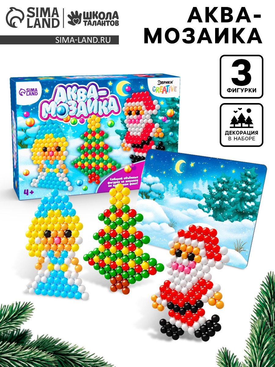 Аквамозаика с декорациями «дед мороз и снегурочка», 3 трафарета, 312 шариков. Аквамозаика с декорациями «Дед Мороз и Снегурочка» скрасит дни в ожидании Нового года и поможет весело и с пользой провести время. Ребёнок соберёт 3 объёмных фигурки из шариков-пикселей, потренирует мелкую моторику и внимание. Как сделать фигурку Выберите рисунок и поместите его под прозрачную основу.С помощью пинцета выложите цветные шарики по образцу.Наберите в бутылочку воды.Распылите воду на фигурку так, чтобы бусинки были равномерно покрыты водой.Оставьте мозаику на 30–40 минут до полного высыхания.После высыхания аккуратно снимите поделку с основы.Проденьте ленточки через отверстия.Можете использовать получившиеся фигурки для украшения ёлки или интерьера, а также для создания оригинальных брелоков.Польза занятий с аквамозаикой Игра с мозаикой развивает мелкую моторику, цветовое восприятие и усидчивость, позволяет ребёнку проявить креативность в удивительном процессе изготовления фигурки. Рекомендовано детям от 4 лет. Для кого:Унисекс|Возраст:От 3 лет|Тематика:Новогодняя|Символ года:Нет|Тематика праздника:Новый год|Страна:Китай  развернуть описание ▼