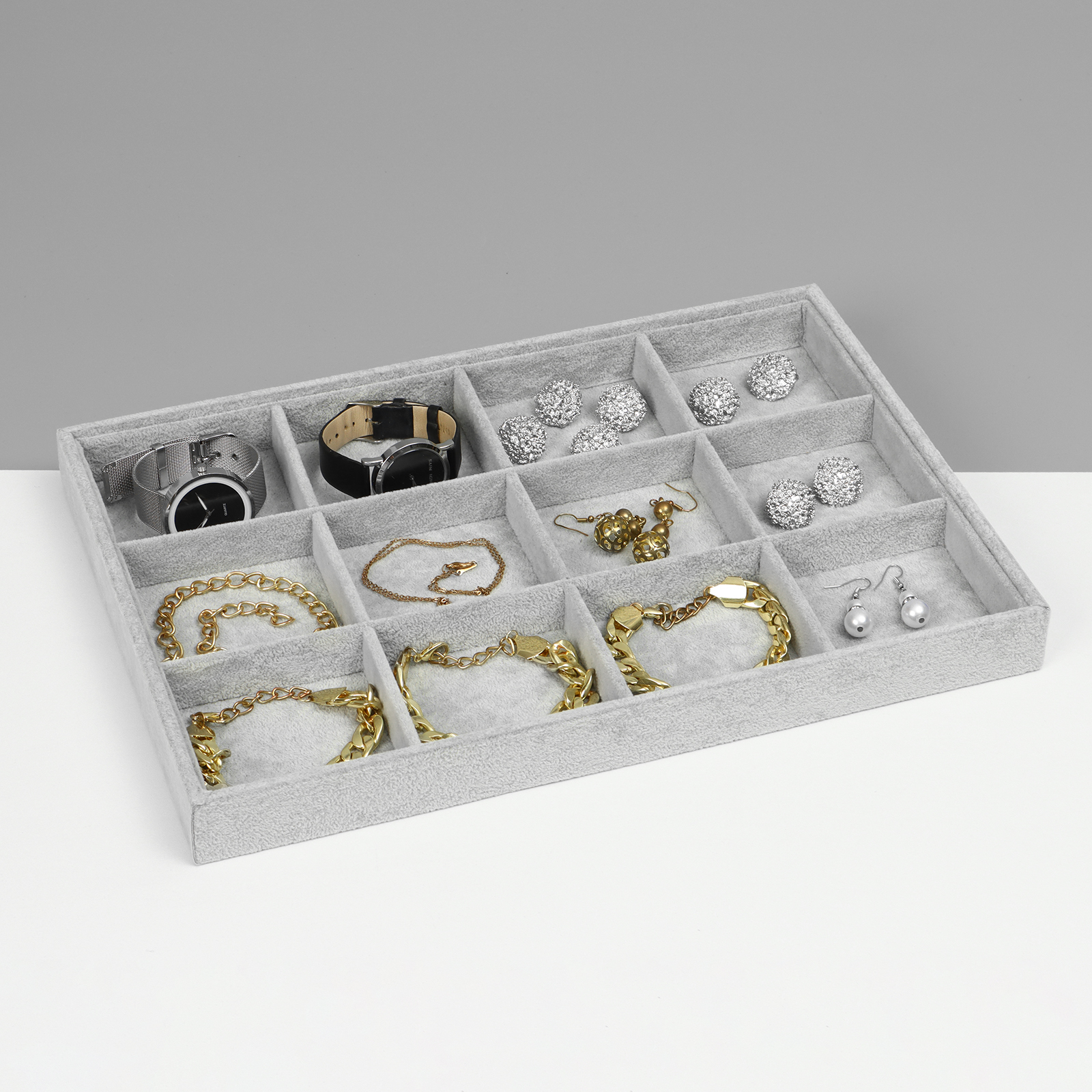 Подставка для украшений 12 ячеек, флок, 35x24x3, цвет серый