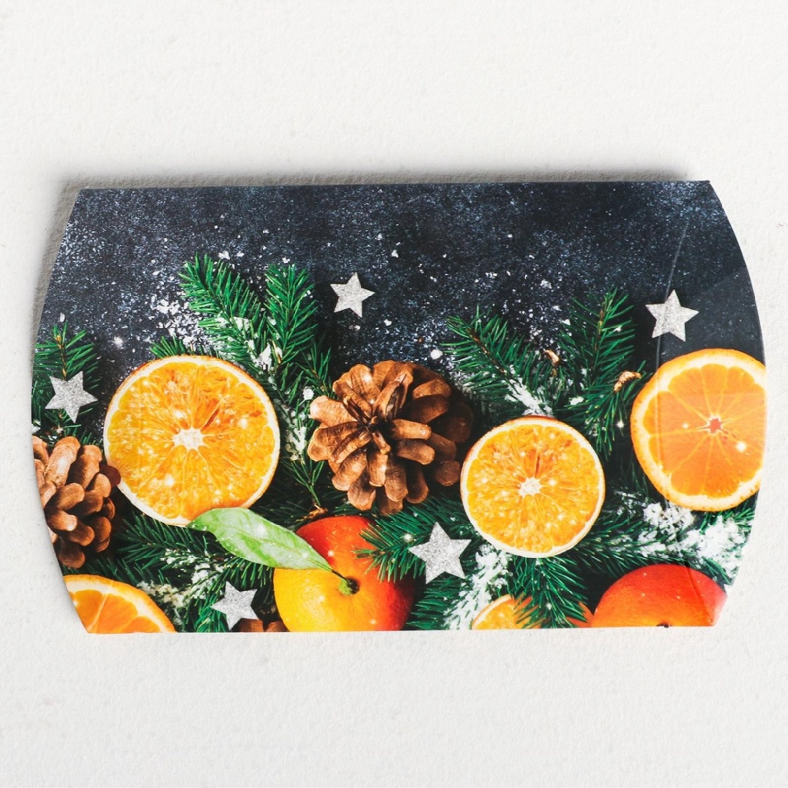 Коробка новогодняя складная фигурная «мандариновое настроение», 11 х 8 х 2 см, новый год. Размер полезной части в собранном виде 9 х 8 х 2 смЦвет:Разноцветный|Для кого:Унисекс|Форма:Фигурная|Плотность, г/м :230|Размер, см:11 х 8|Длина, см:11|Ширина, см:2|Высота, см:8|Допустимый вес вложения, г:50|Тематика:Новогодняя|Символ года:Нет|Тематика праздника:Новый год|Материал:Картон|Декоративные элементы:Без декора|Вид:Складные коробки|Размер:Малый (11-17 см)|Окошко:Нет|Крышка-дно:Нет|Страна:Китай  развернуть описание ▼