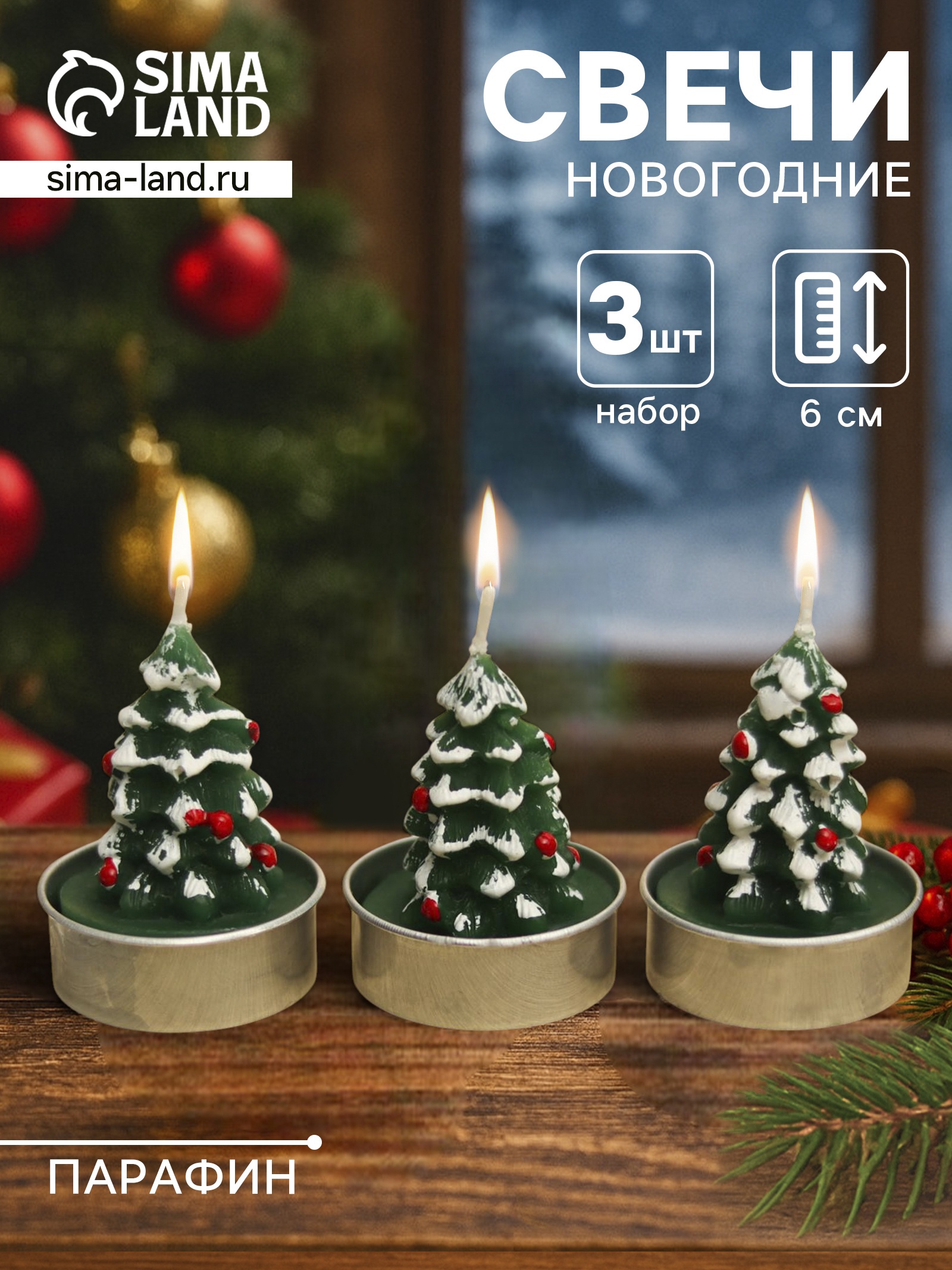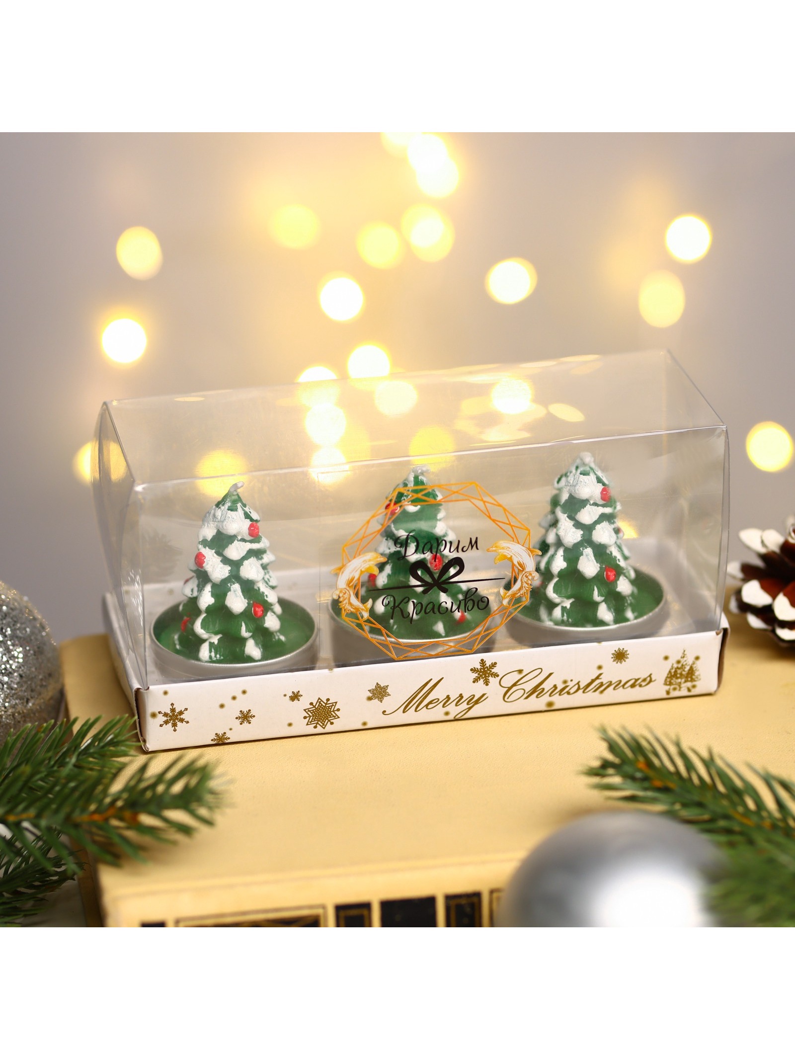 Набор свечей новогодних «ёлка зелёная», 4 6 см, 3 шт.