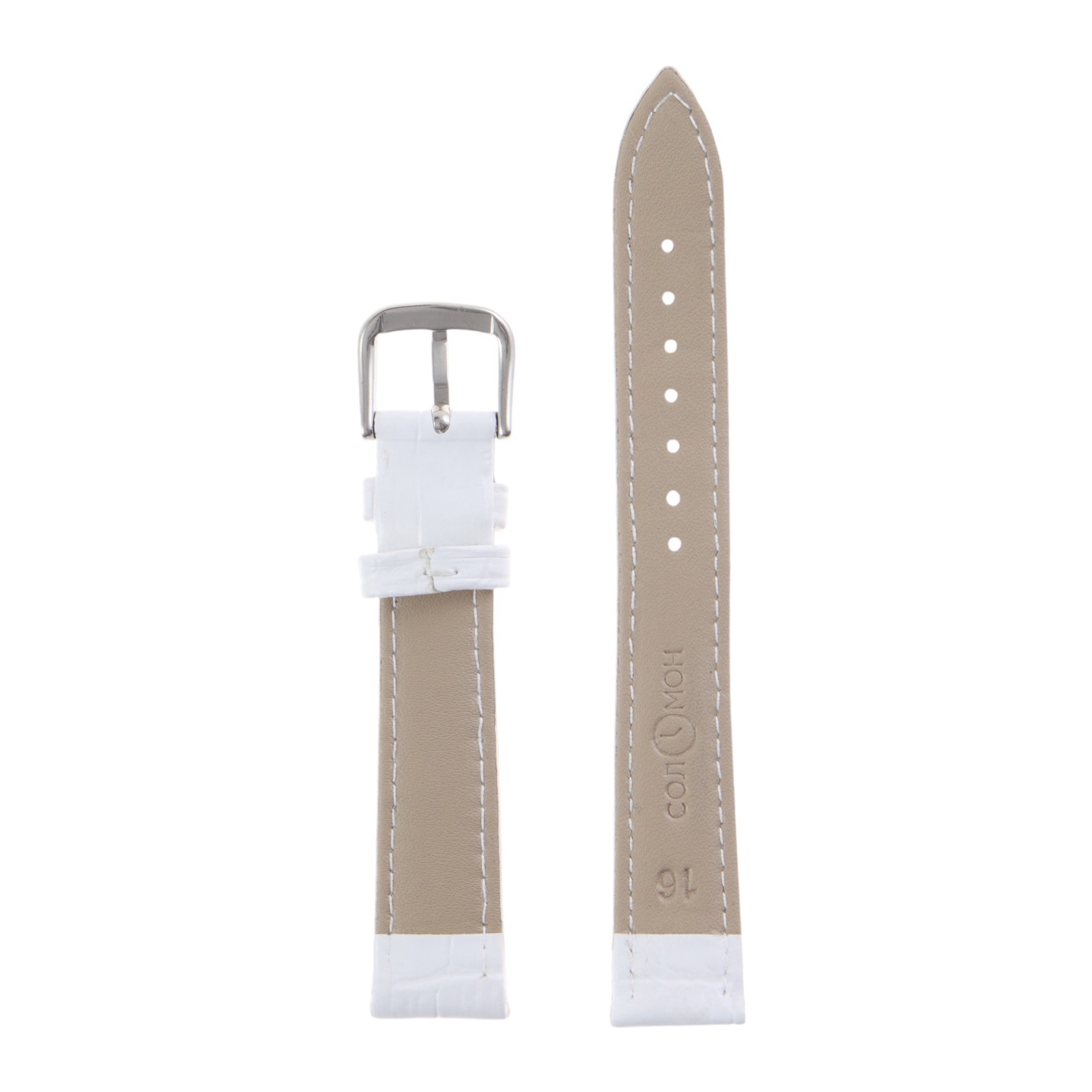 Ремешок для часов соломон 16 мм, натуральная кожа, L-20 см, белый