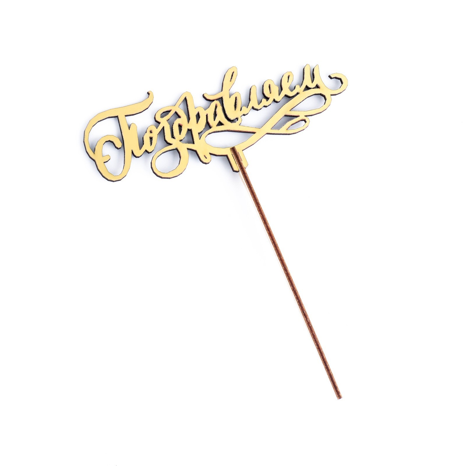 Топпер деревянный "поздравляем" золотой дарим красиво 14,3х5,8 см
