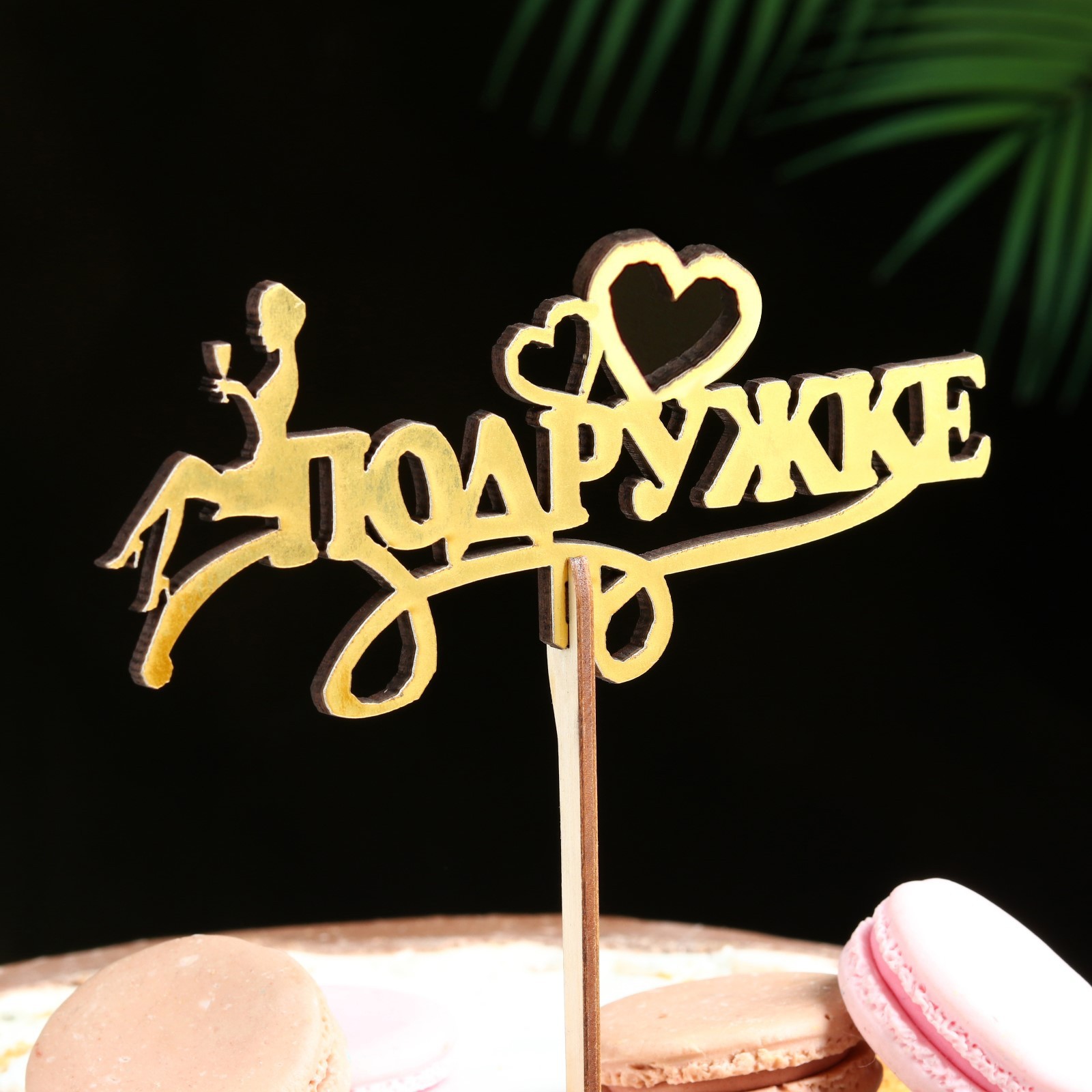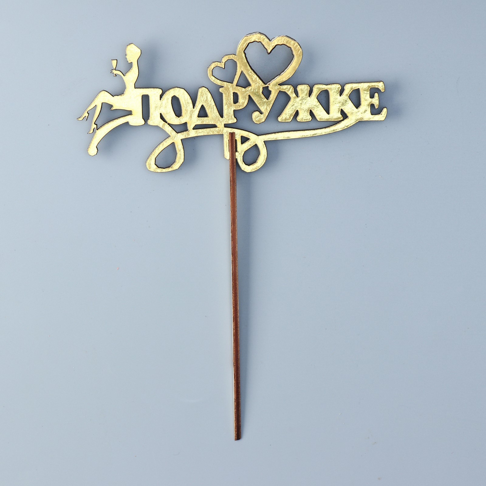 Топпер деревянный "подружке" золотой дарим красиво 14,3х6,4 см