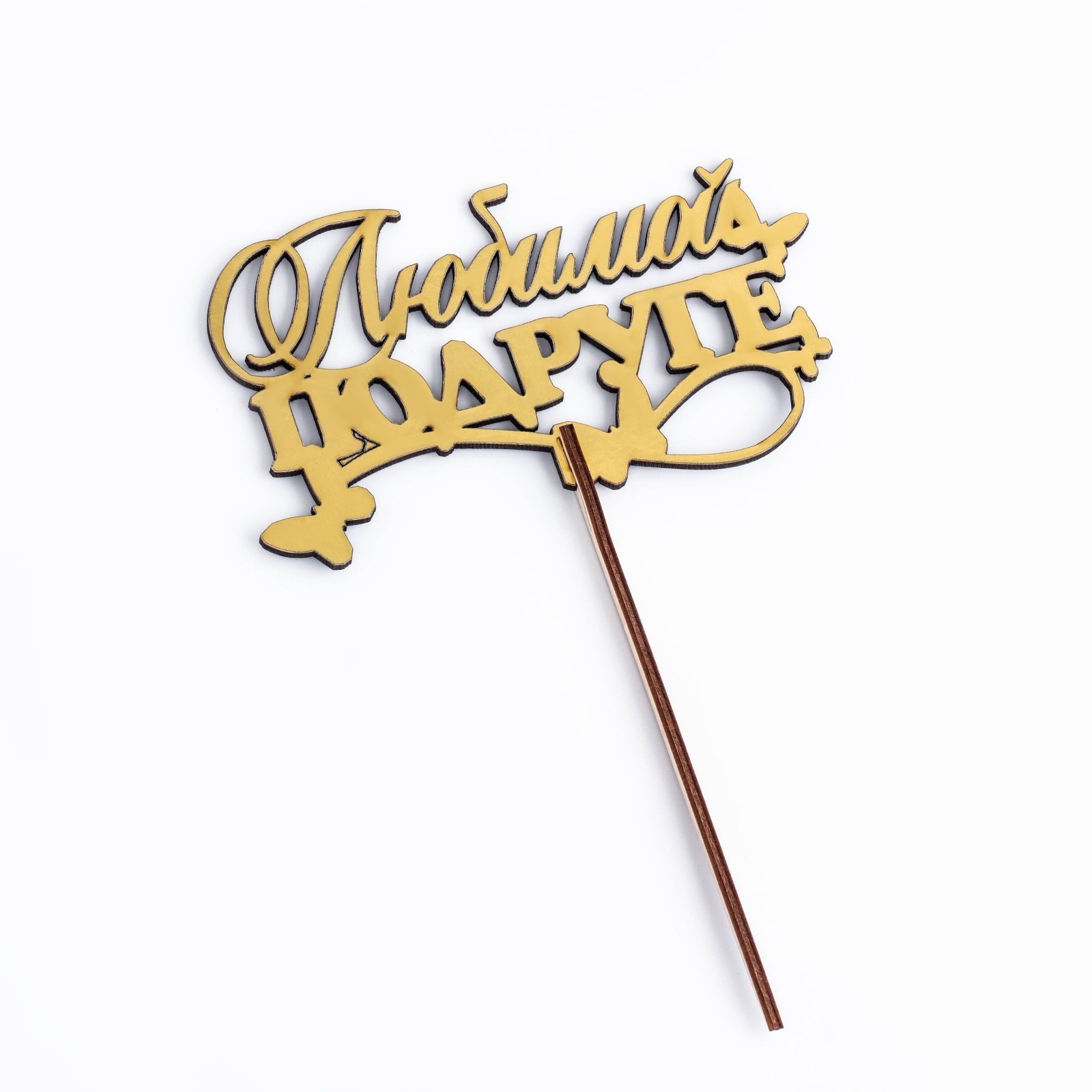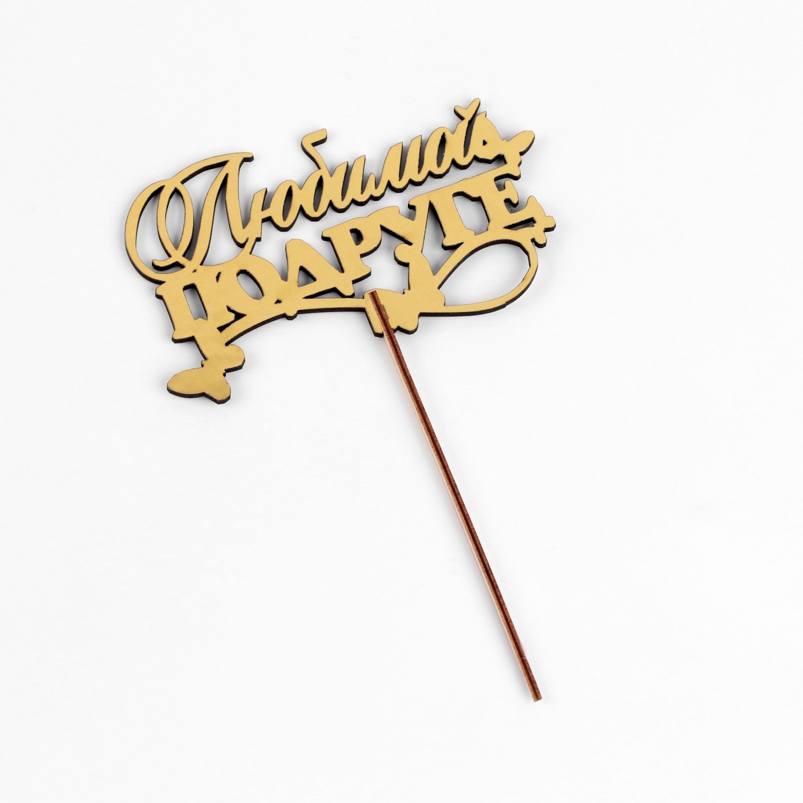 Топпер деревянный "любимой подруге" золотой дарим красиво 14,3х8,4 см
