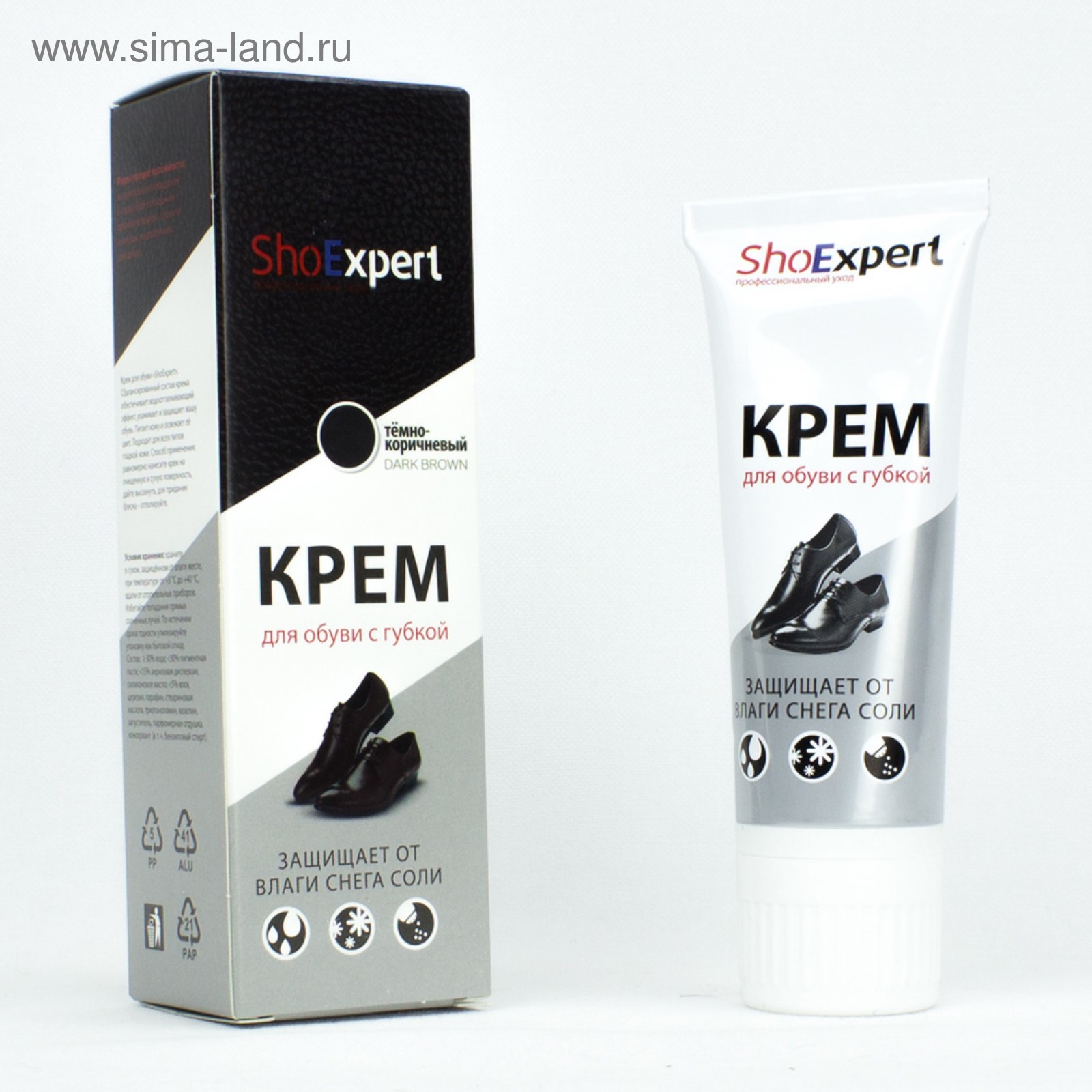 Крем для обуви Shoexpert, цвет тёмно-коричневый, туба с губкой, 75 мл