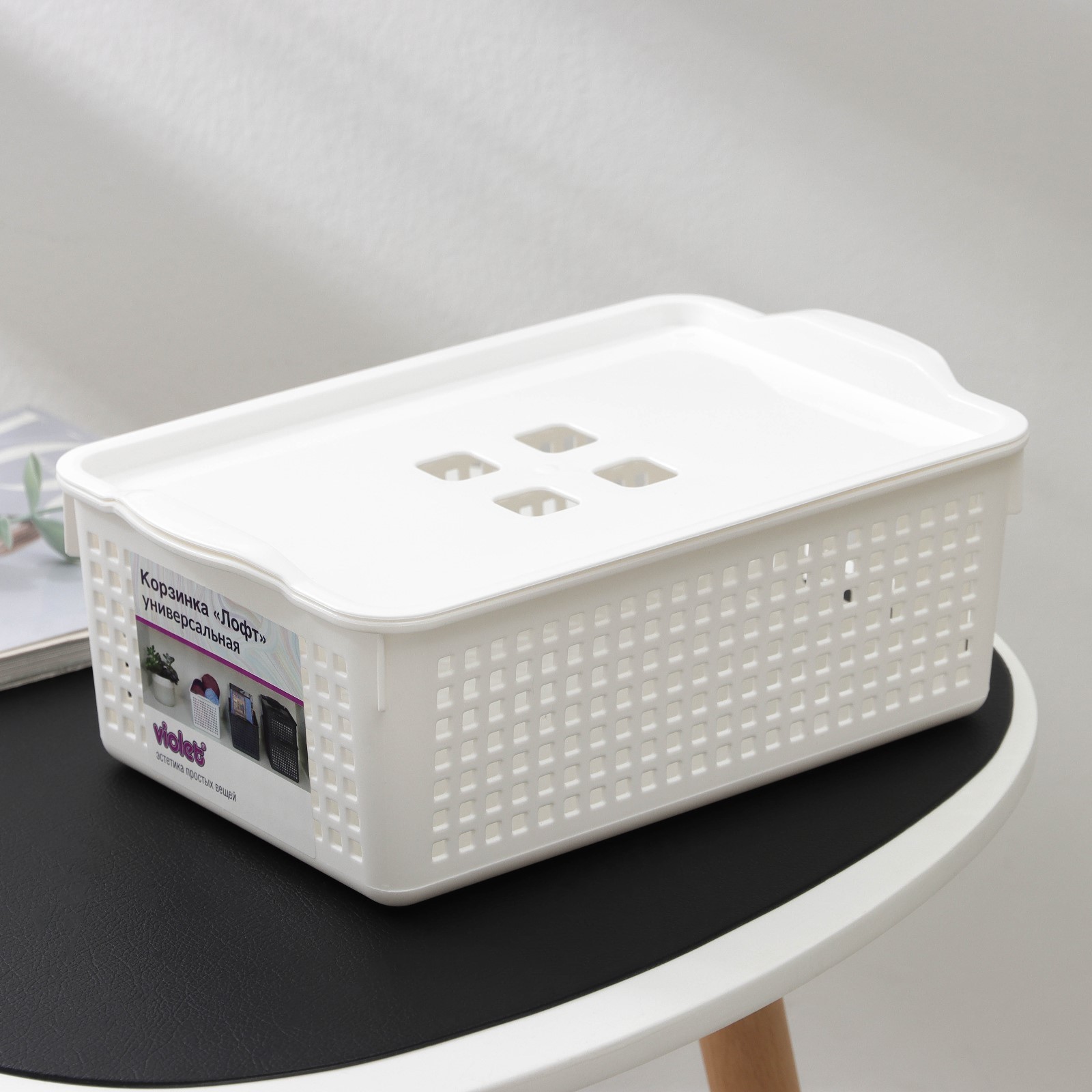 Корзина для хранения с крышкой «лофт», 3,8 л, цвет белый