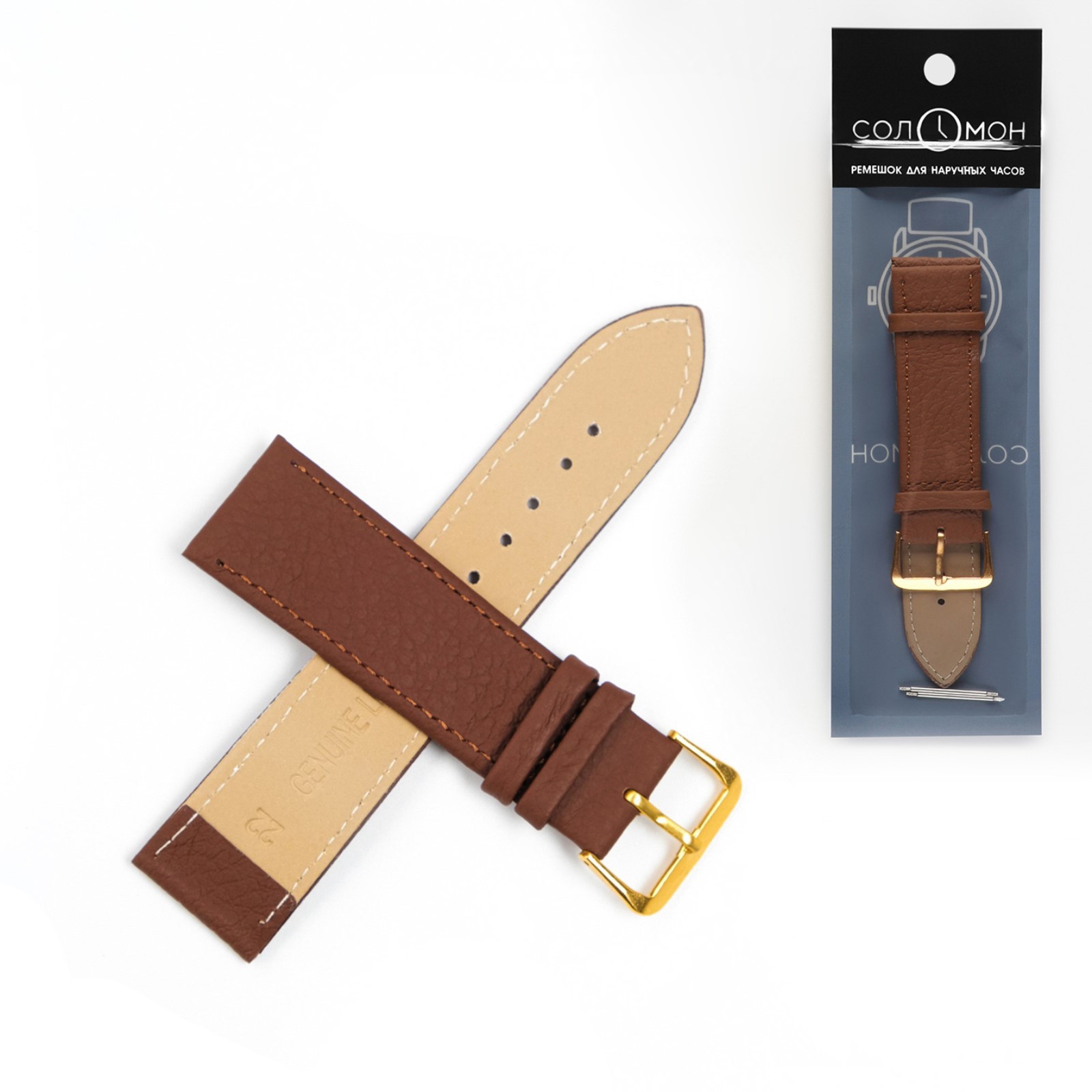 Ремешок для часов соломон, 22 мм, натуральная кожа, L-20 см, коричневый
