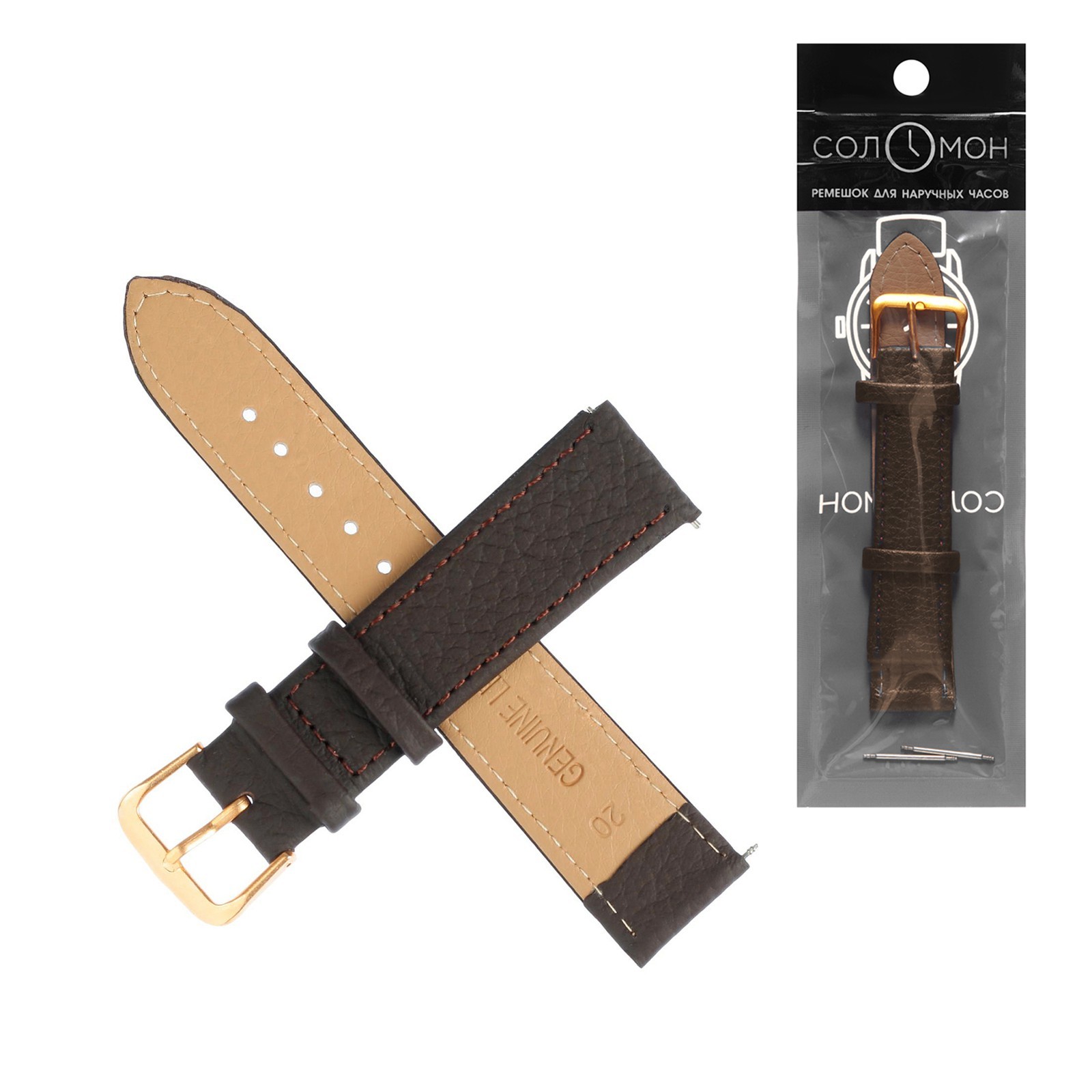 Ремешок для часов соломон, 20 мм, натуральная кожа, L-20 см, коричневый с тиснением