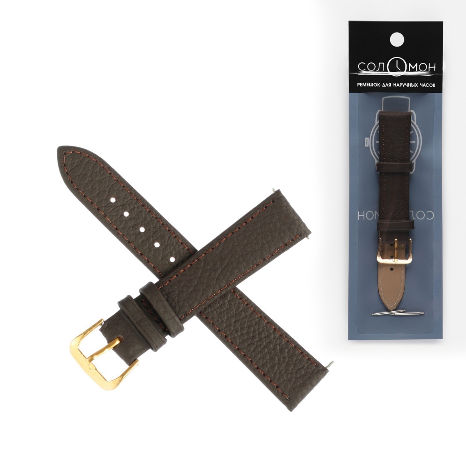 Ремешок для часов соломон, 18 мм, натуральная кожа, L-20 см, коричневый с тиснением