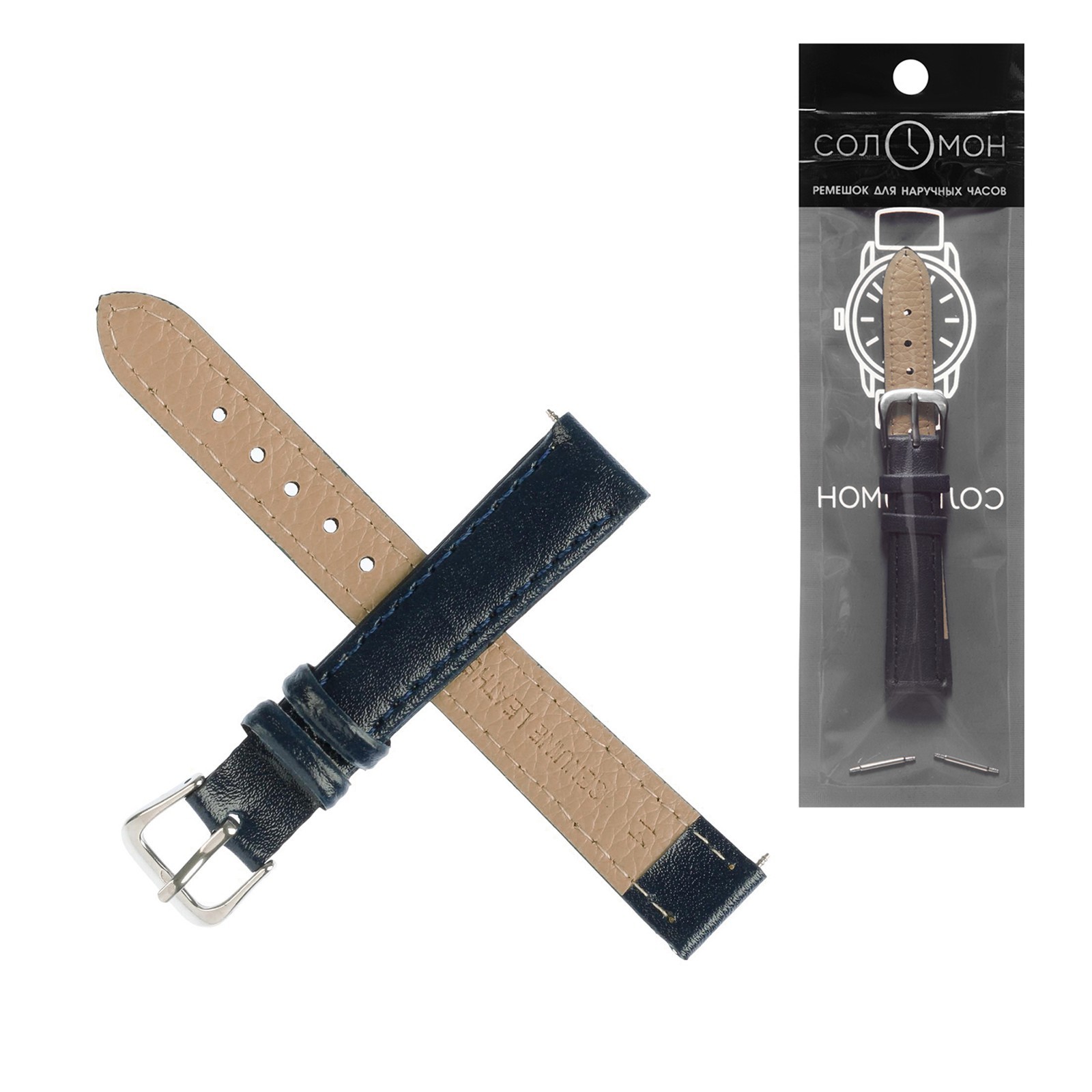 Ремешок для часов соломон, 14 мм, натуральная кожа, L-18 см, темно-синий