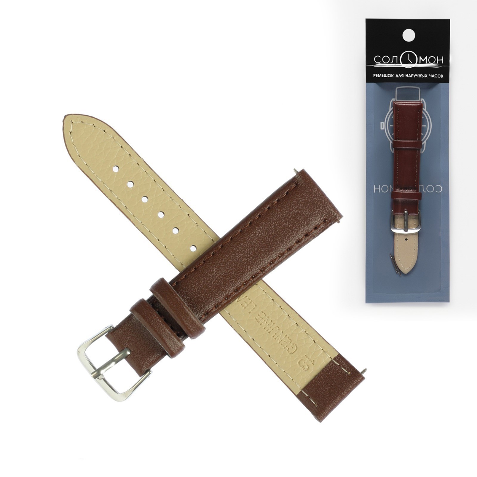 Ремешок для часов соломон, 18 мм, натуральная кожа, L-20 см, коричневый