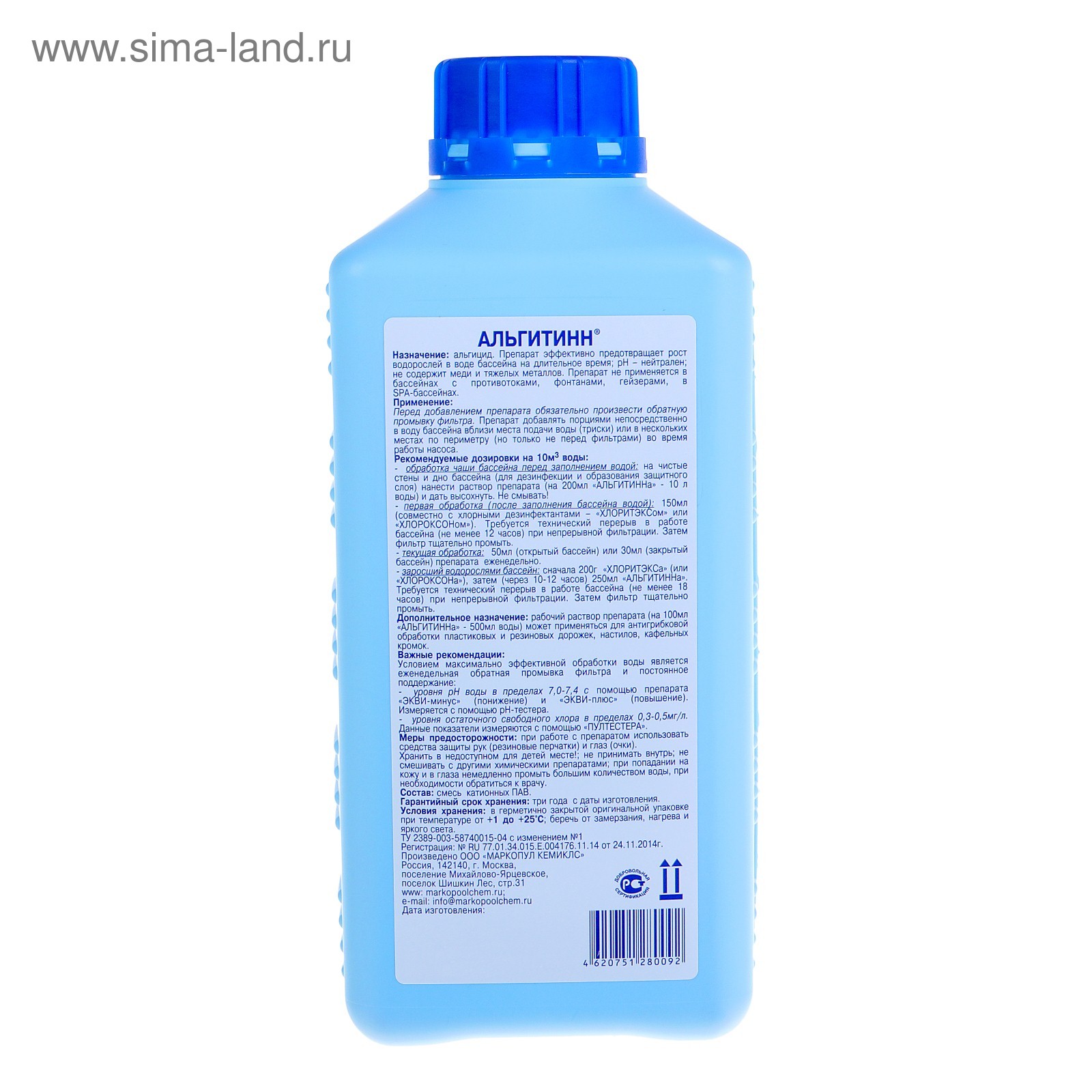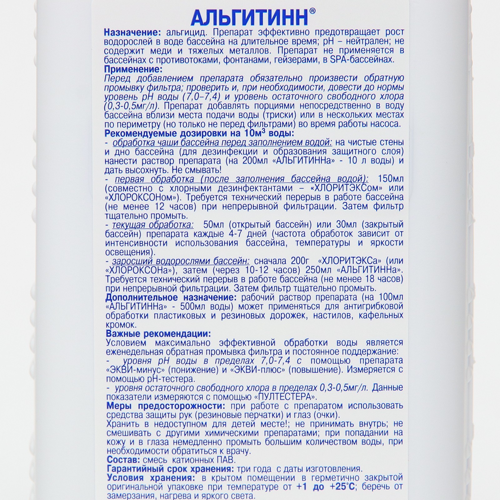 Средство для очистки воды в бассейне "альгитинн", от водорослей, 1 л